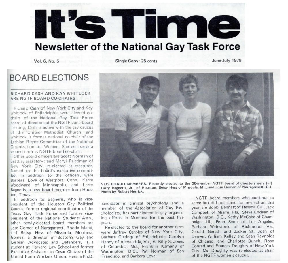Above, with Jim Lloyd and Richard Burkhardt, December 1978 June 1979, became NGTF Board Member