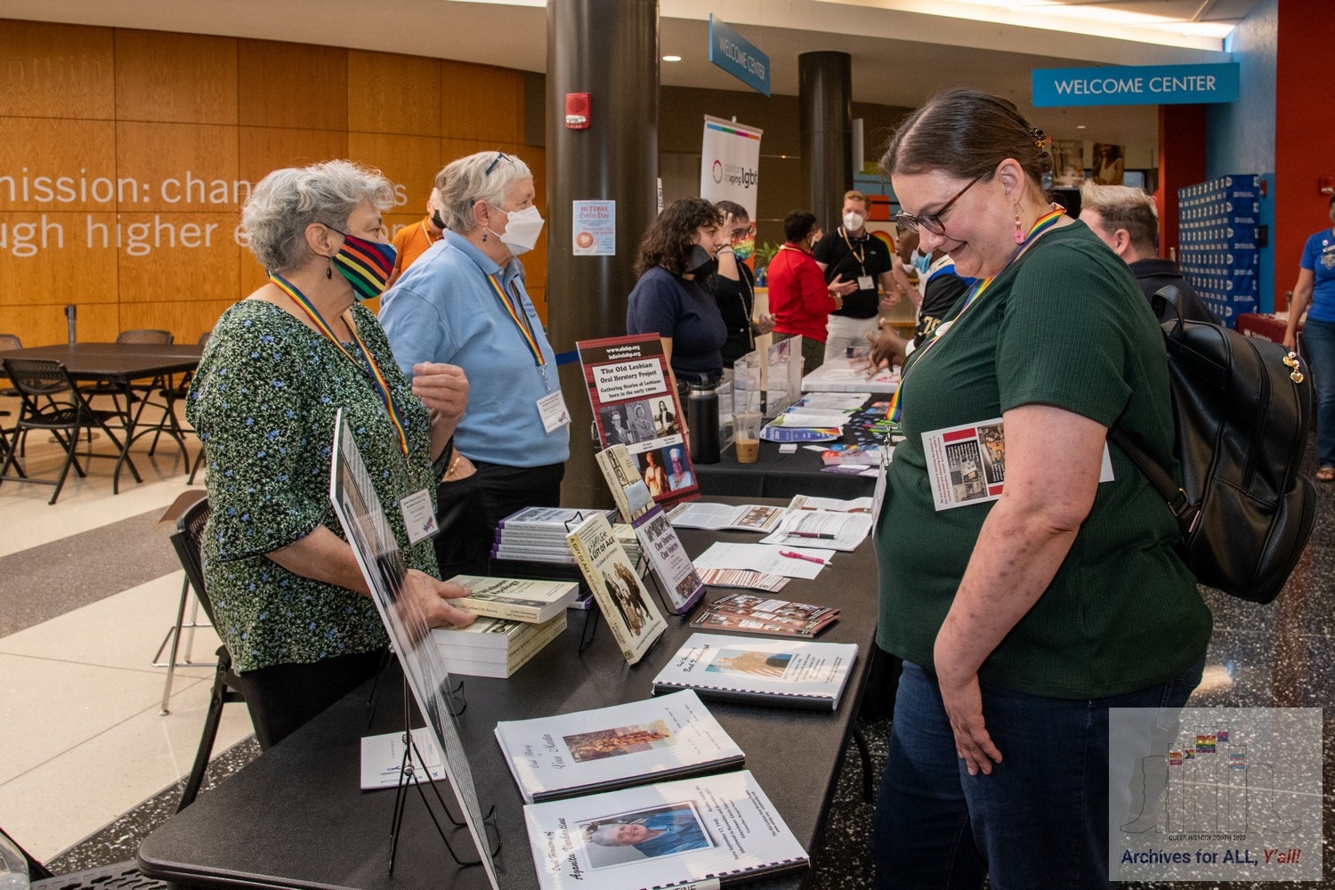 Above, Sara & Barb staffing the OLOHP table; at right, Maigen and Josh and DV person