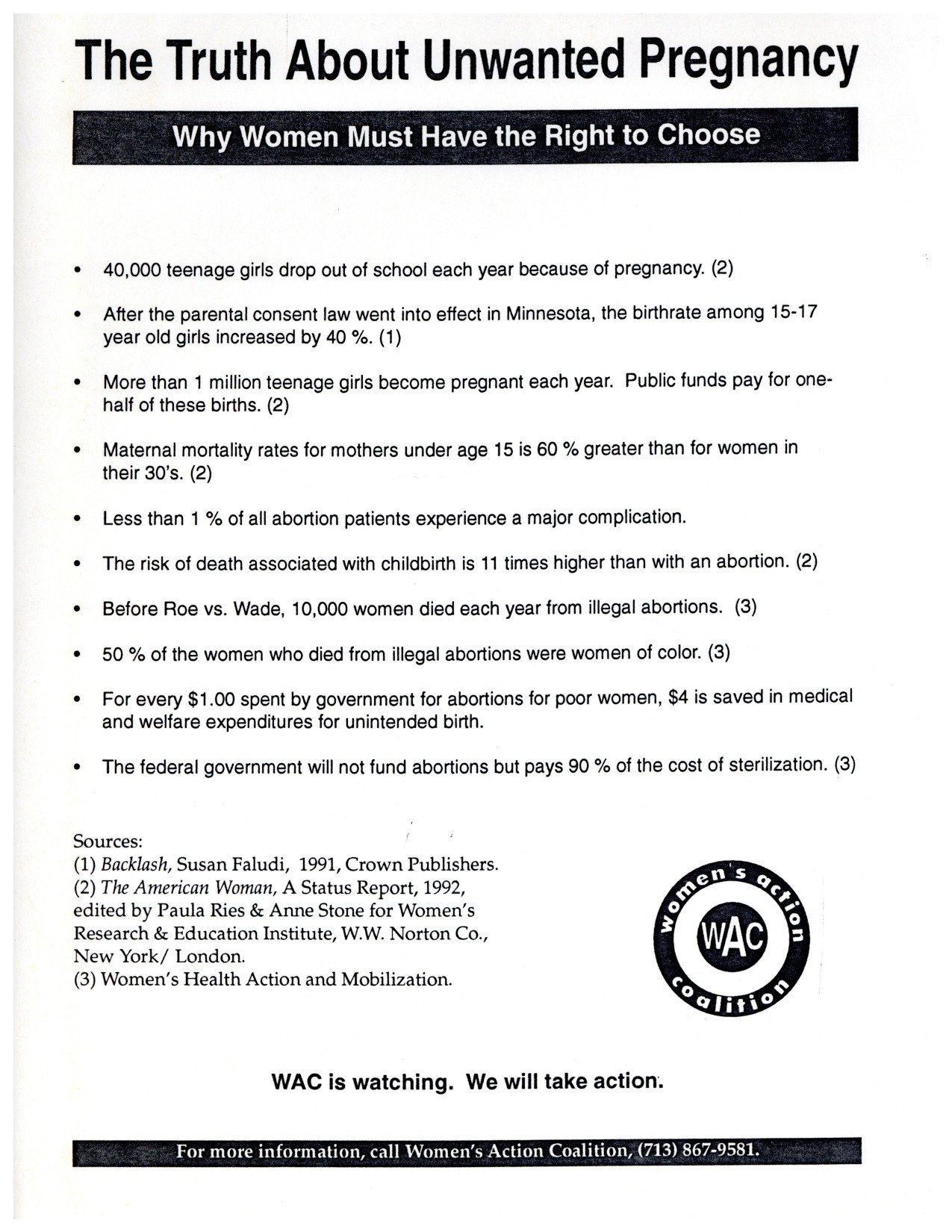 WAC Women's Action Coalition Houston 1992-1993 |