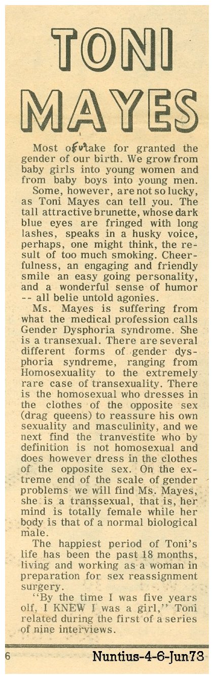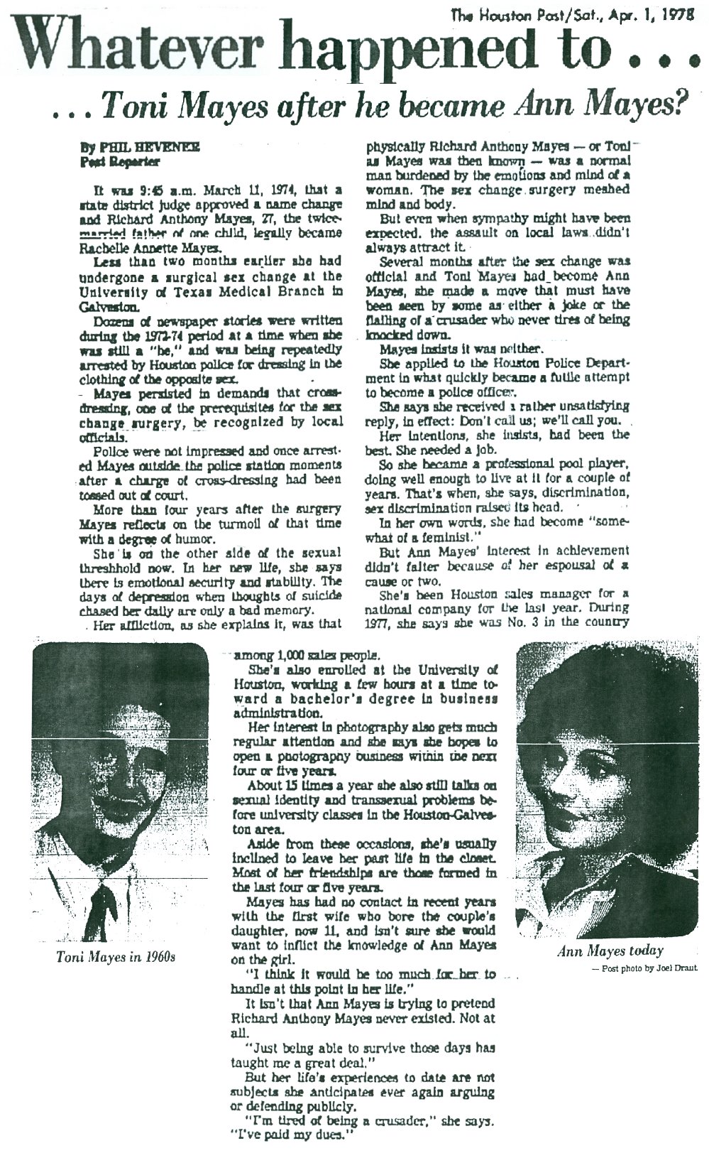 struggle began anew in 1972 when Toni Mayes was arrested,