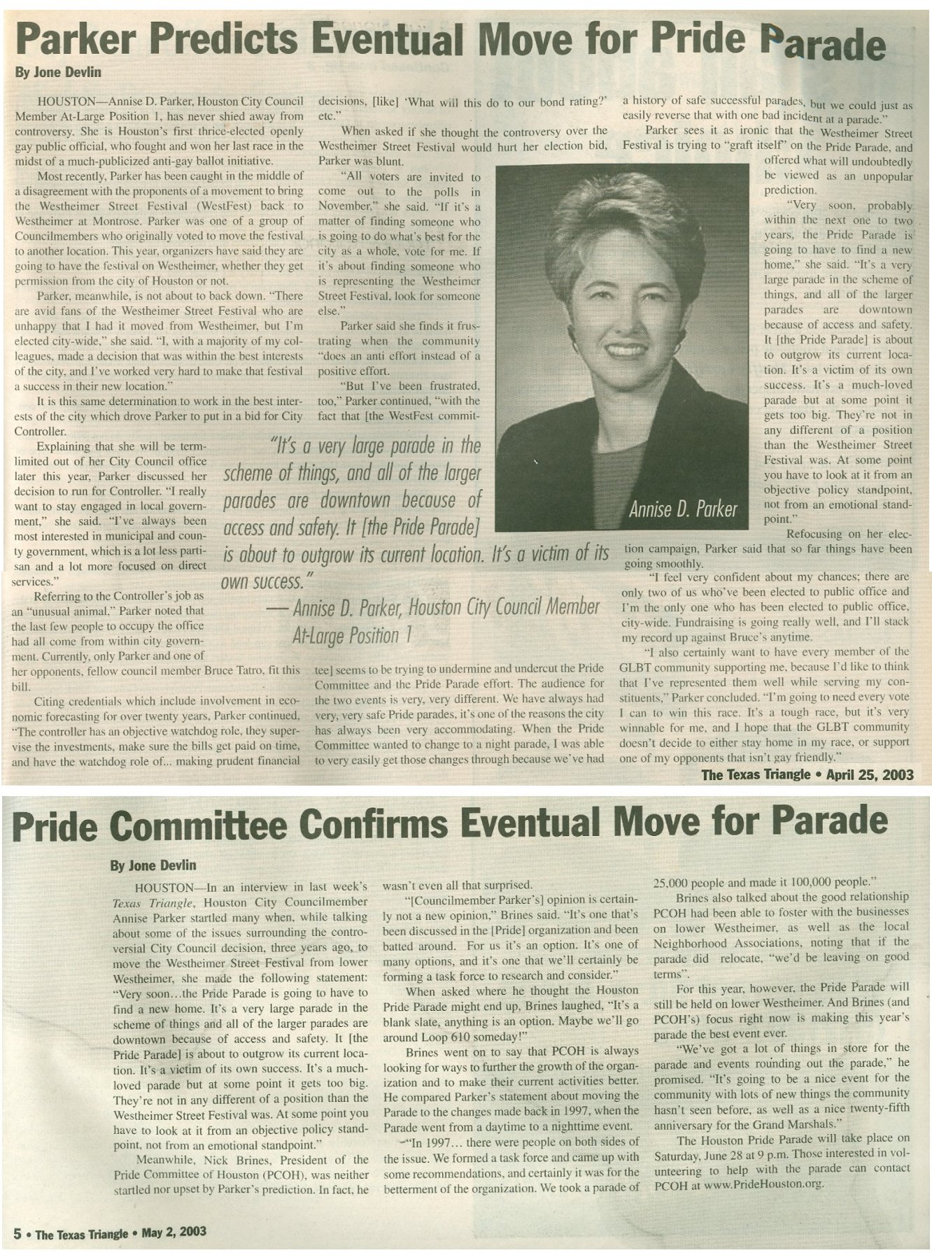 3, 13:25 Linda Morales Don Gill Jimmy Carper Jackie Doval Deborah Bell Tori Williams Ray Hill Andy Mills Marion Coleman Rita Wanstrom Marion Coleman Andy Mills Carolyn Mobley Annise Parker Jack Jackson Deborah Bell Ray Hill |
