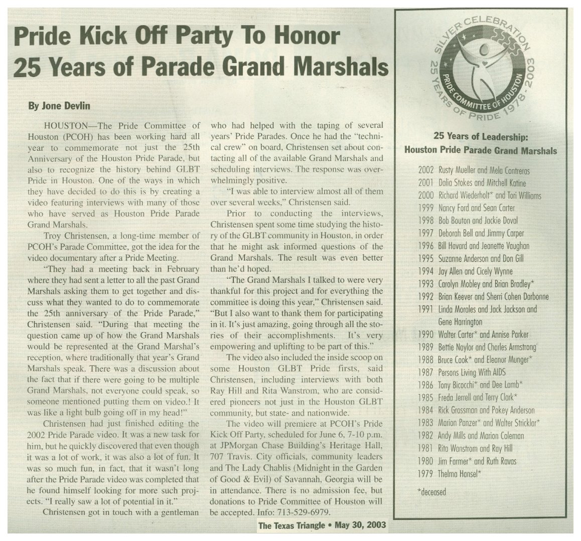 growing resource of mostly Houston LGBT history, with considerable statewide