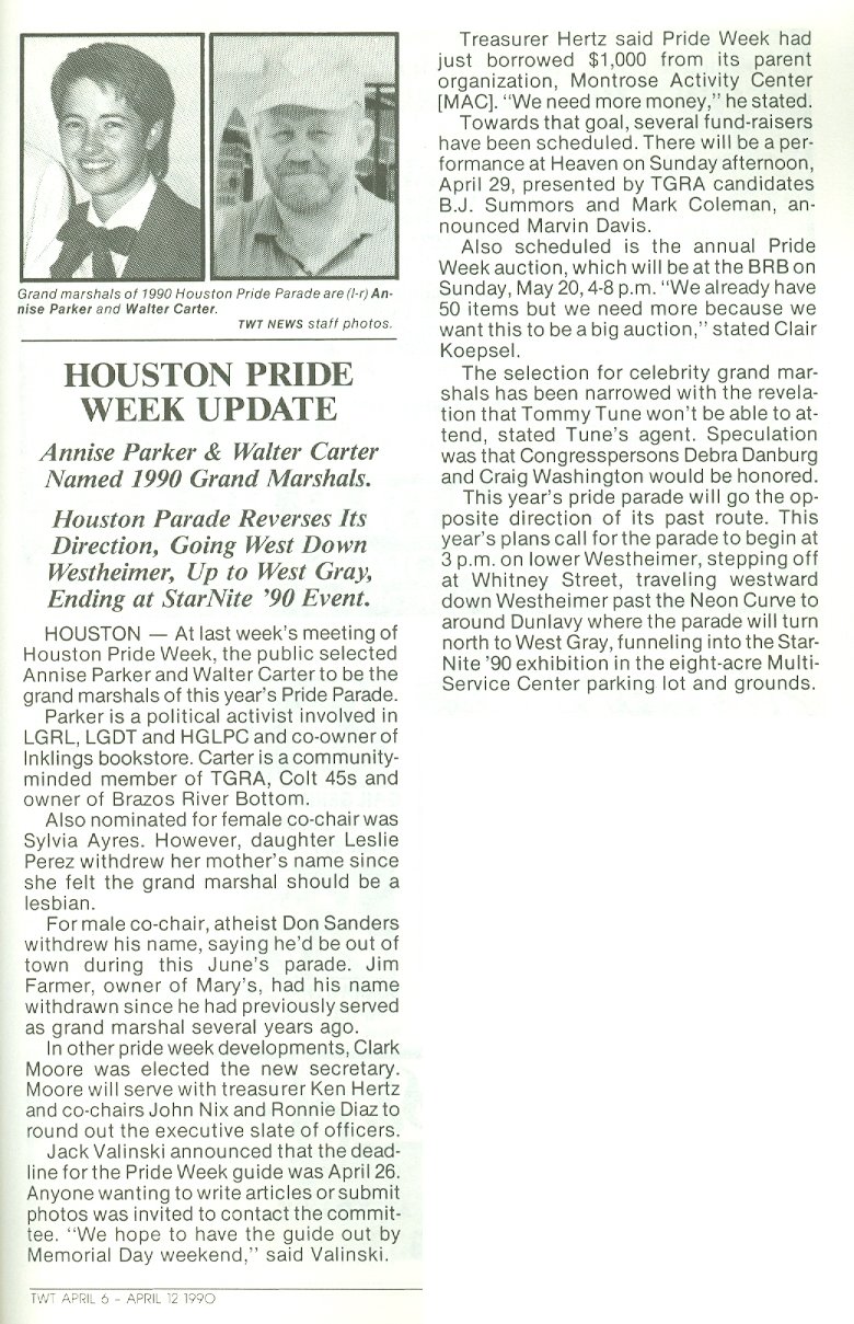 below, Grand Marshals Annise Parker & Walter Carter