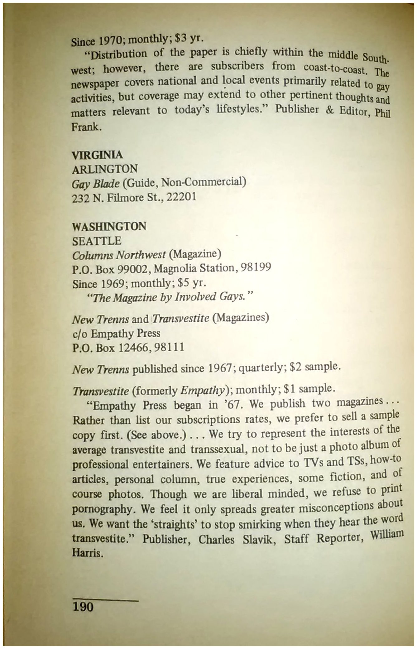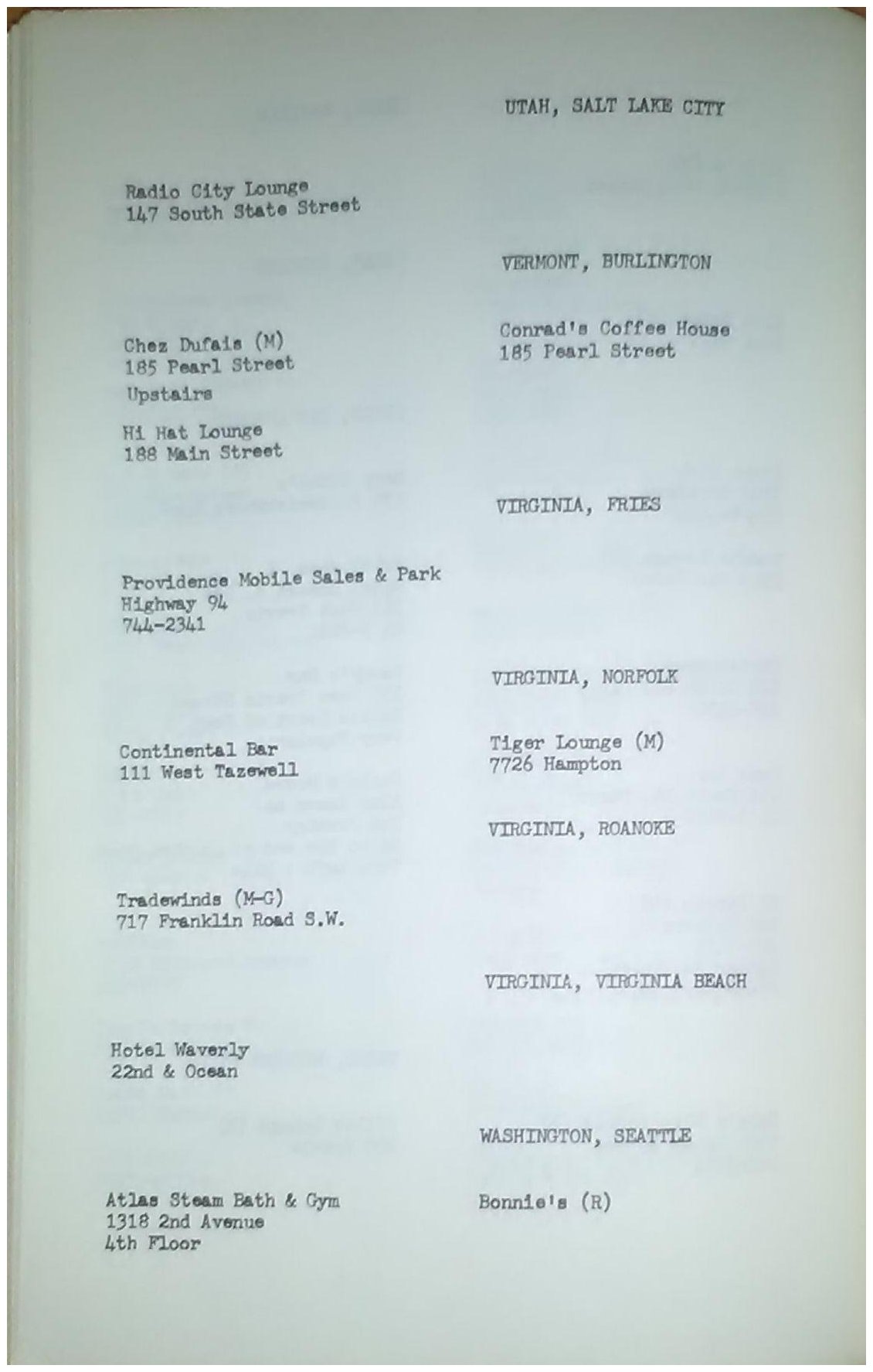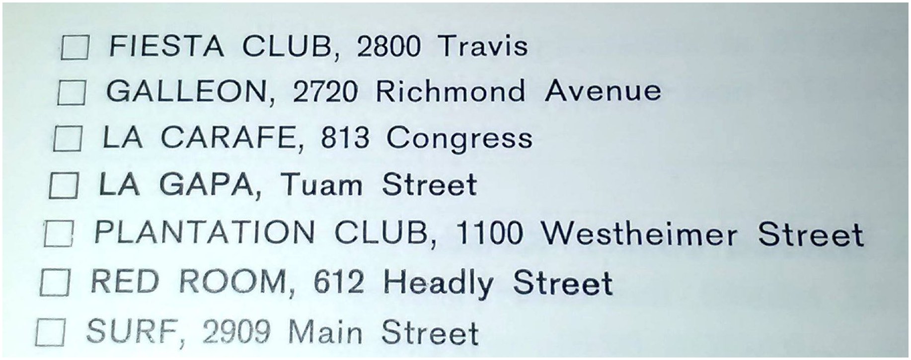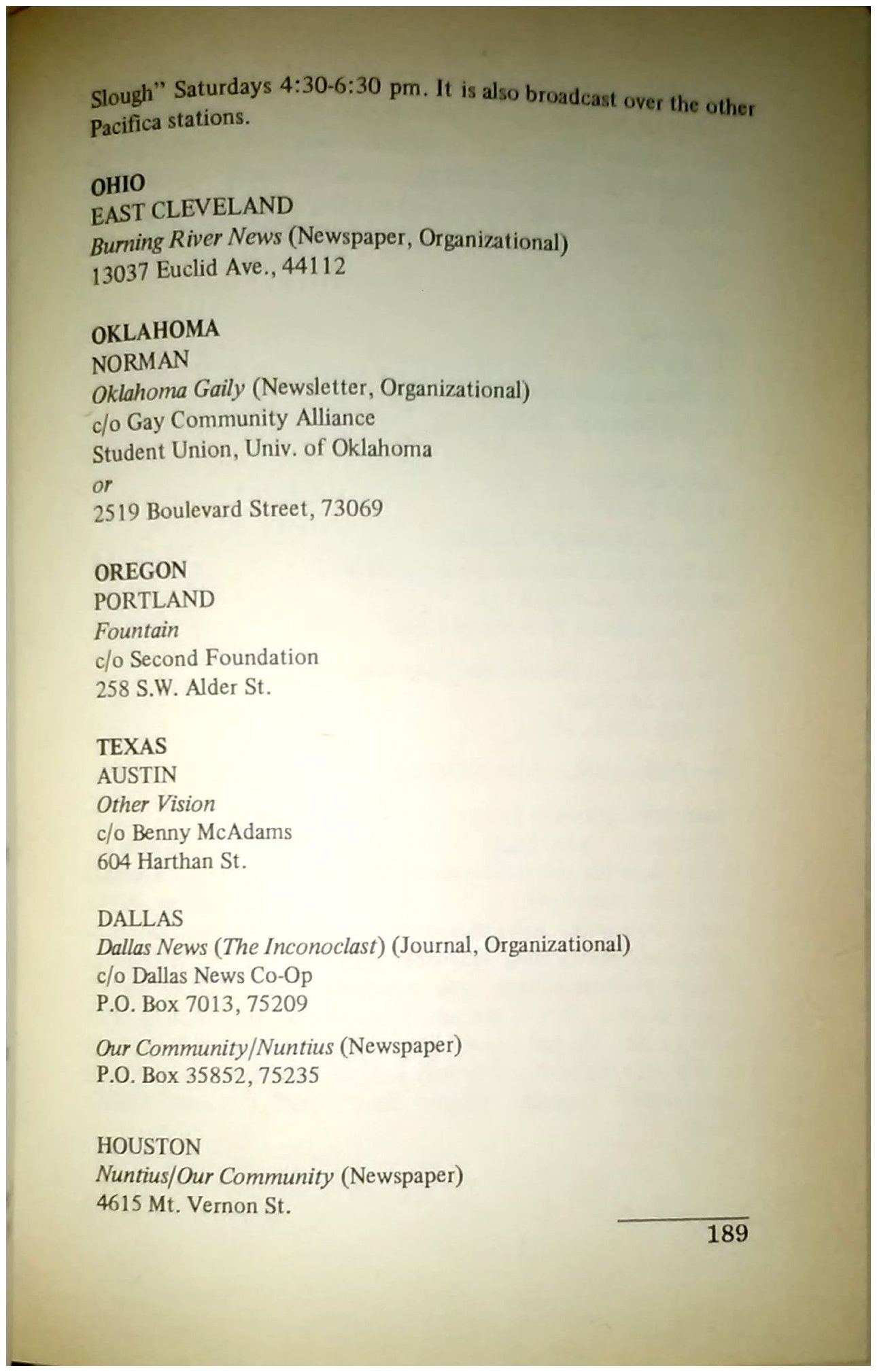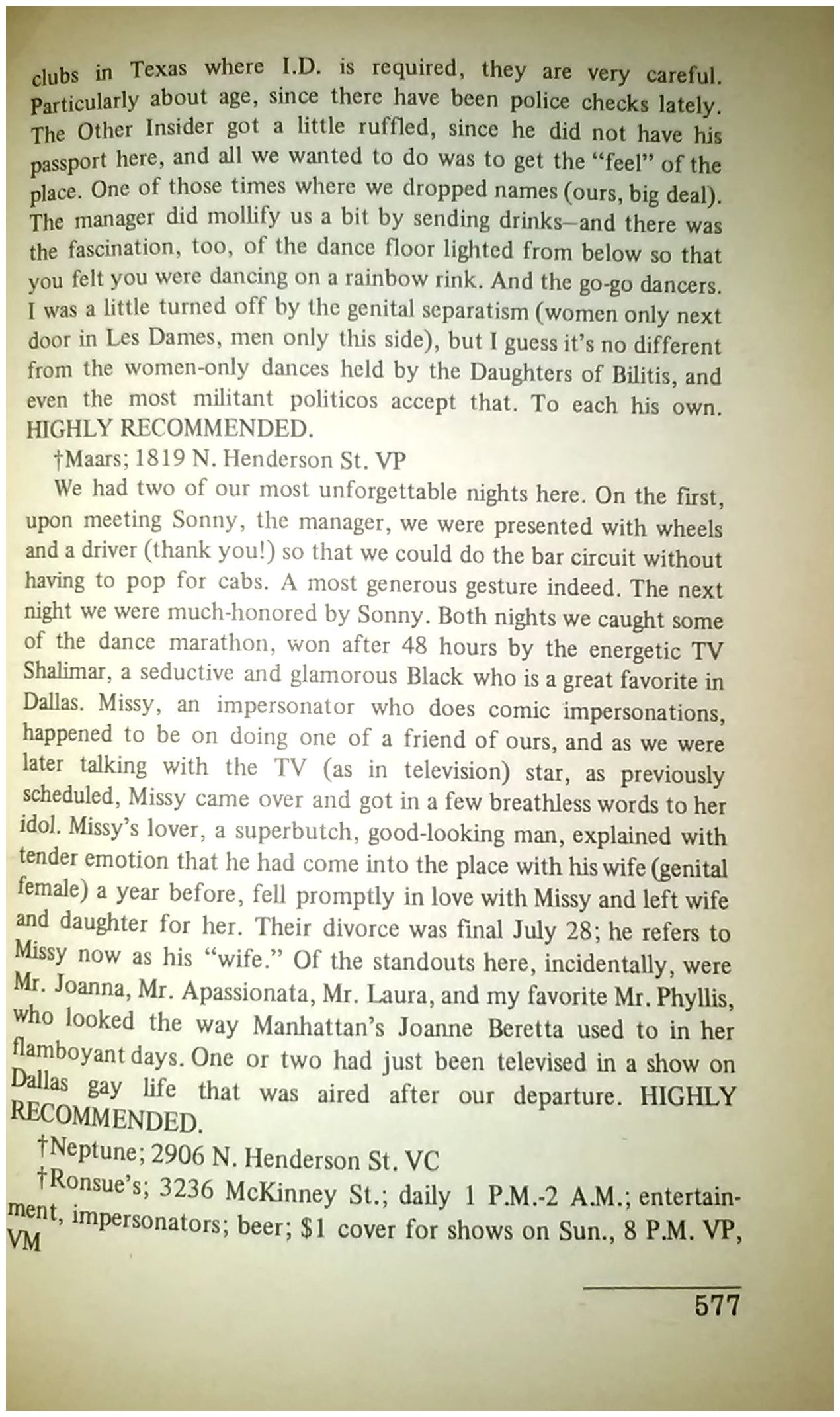 Texas Bars, Businesses, Etc from The Timely Gay Guide (1971), The Gay Insider (1972), & Eos (Denmark, 1972) Courtesy of Luca Luciani (Rome)