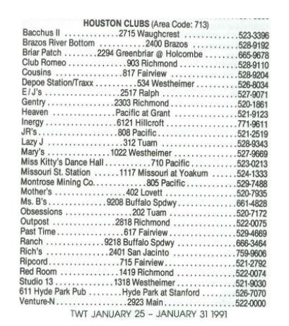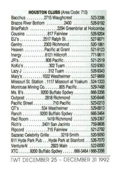 TWT was very accuract on when bars were open and closed, 1992 below, first TWT listing in 1992