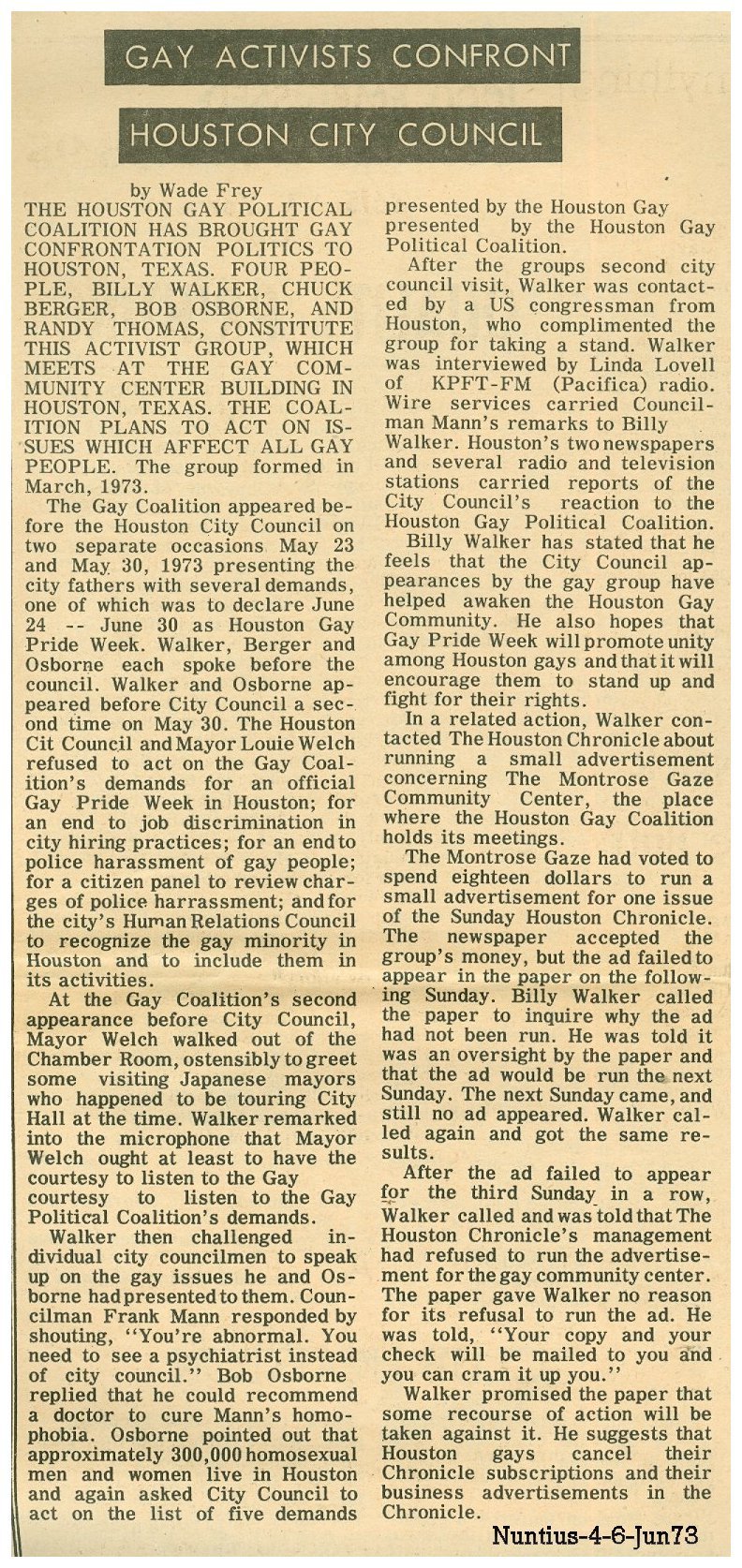 And Berger did a gay radio show on KPFT around the same time...per Remmington's thesis