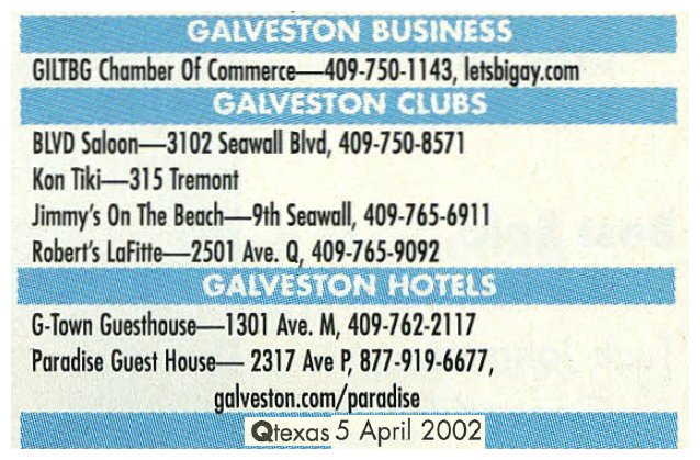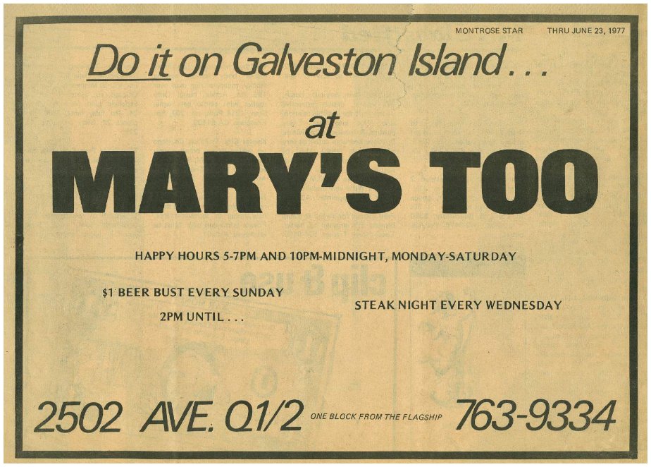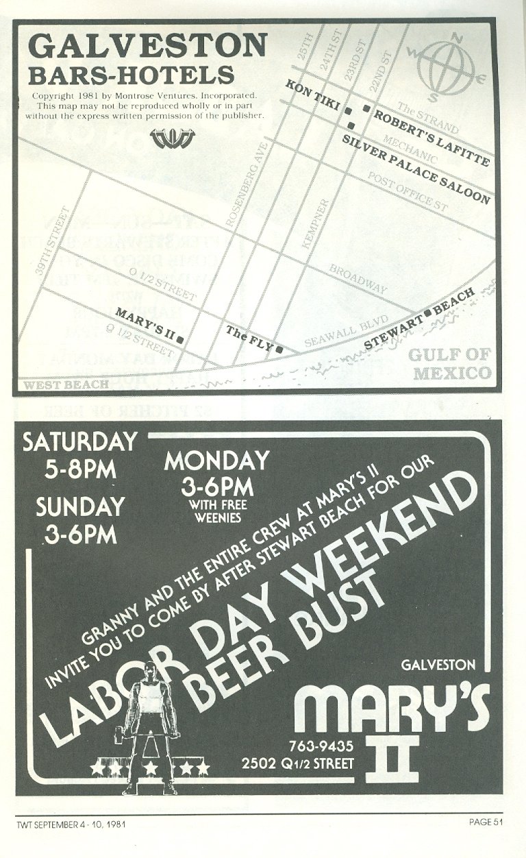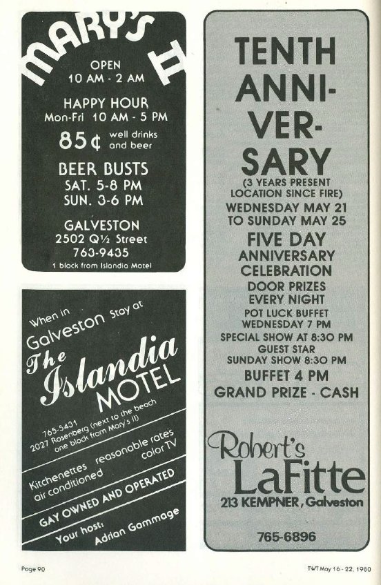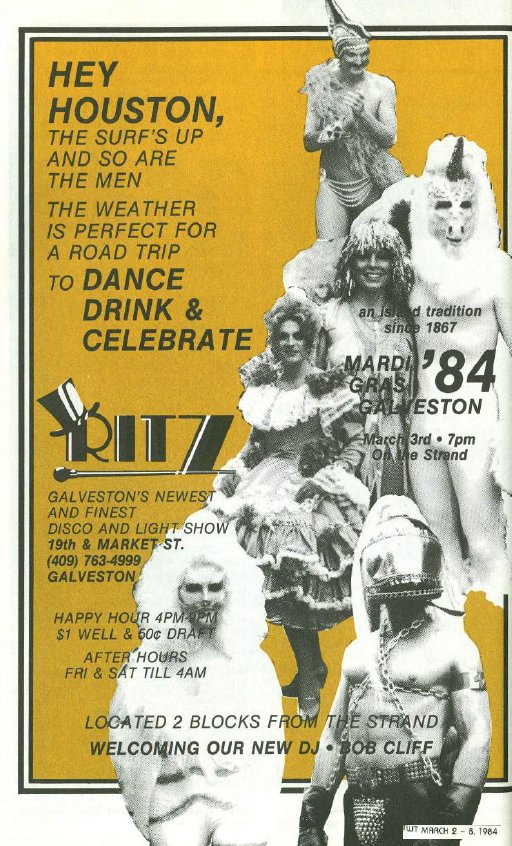This page will travel through the years of Galveston gay bar ads. But First, Here's a quick talk on the History, 5:30 min