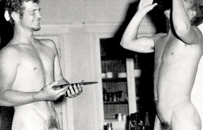 Okay, not nude, but here's Rock Hudson and Sal Mineo