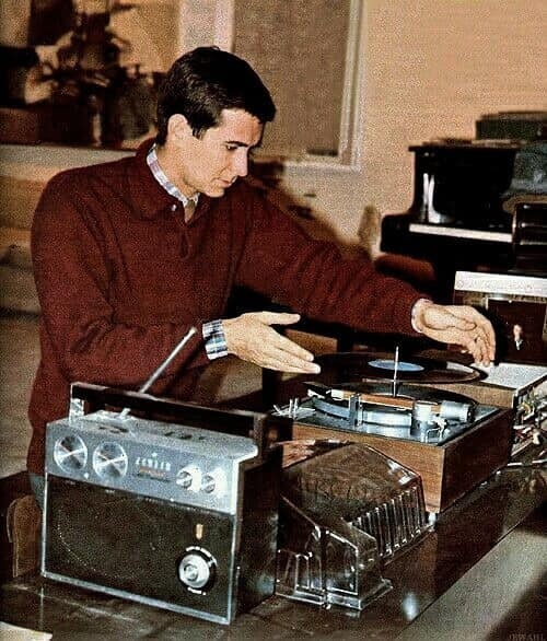 Below, actor Barry Coe, ~1954 Listening to Stan Kenton's "Portraits