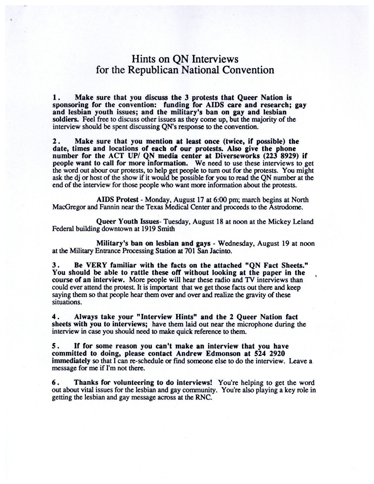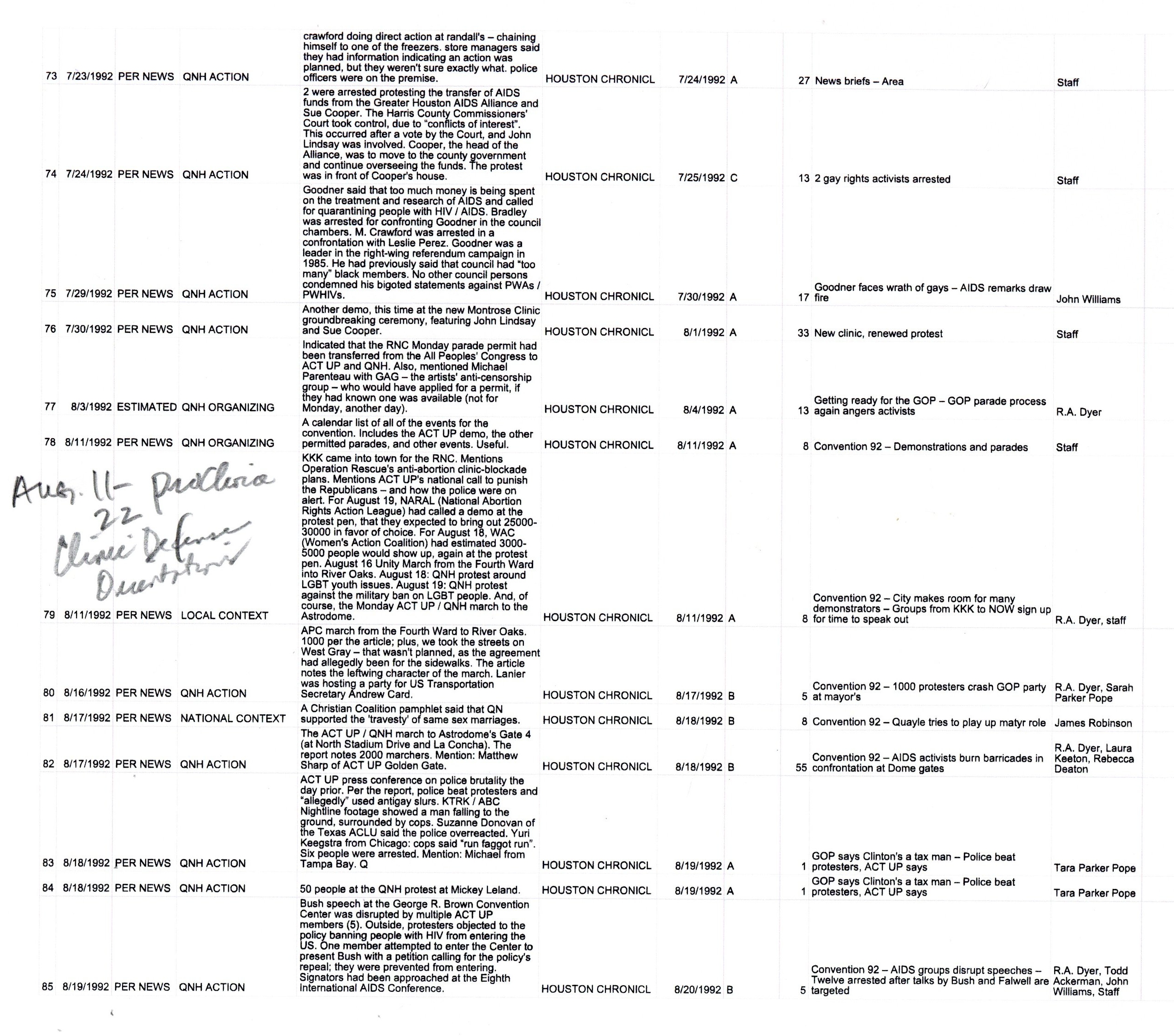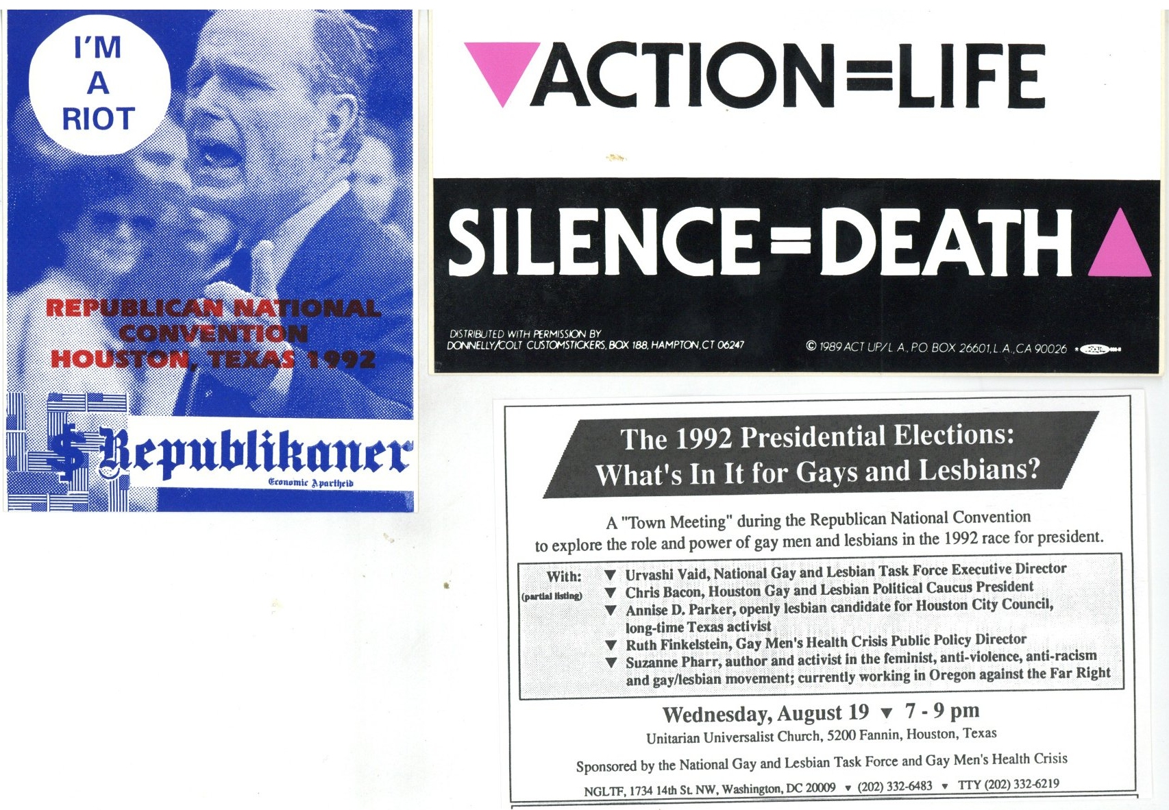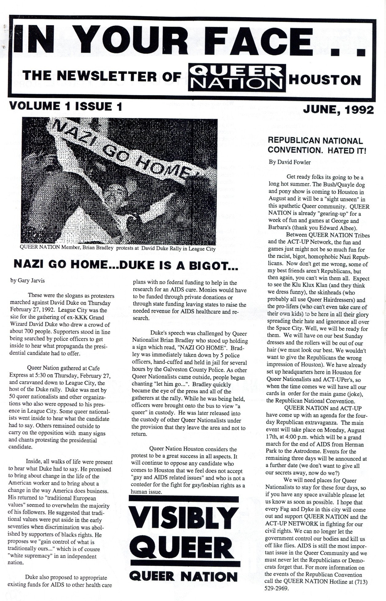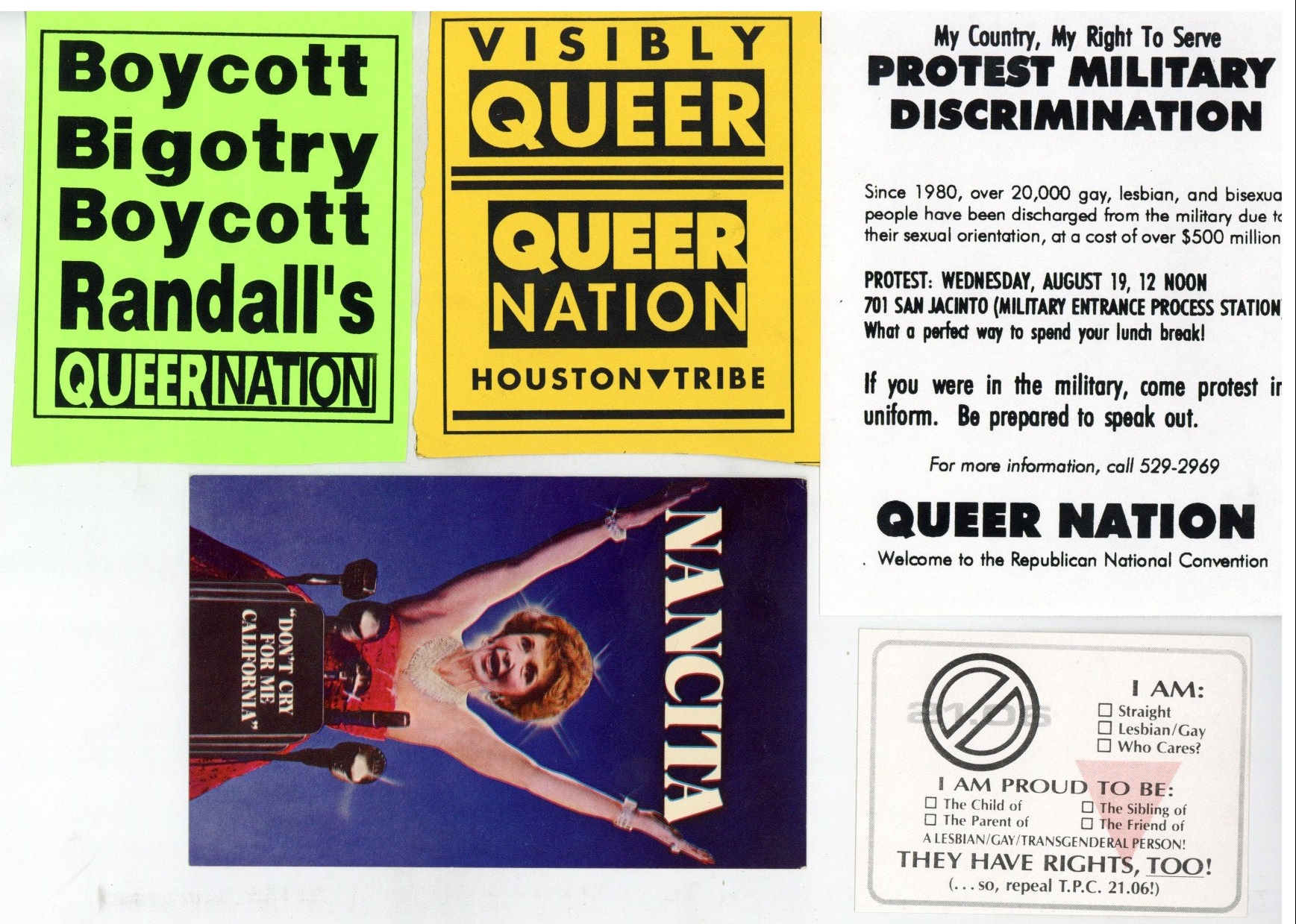 In May 2024 Sue Palmer gave me a large box of Queer Nation / ACT-UP materials It made more sense to set up this special page for that, than to try to integrate them into the QN pages, but a lot of it is from 1992