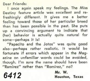 names in the Letters section; perhaps he adapted that as a pen name)