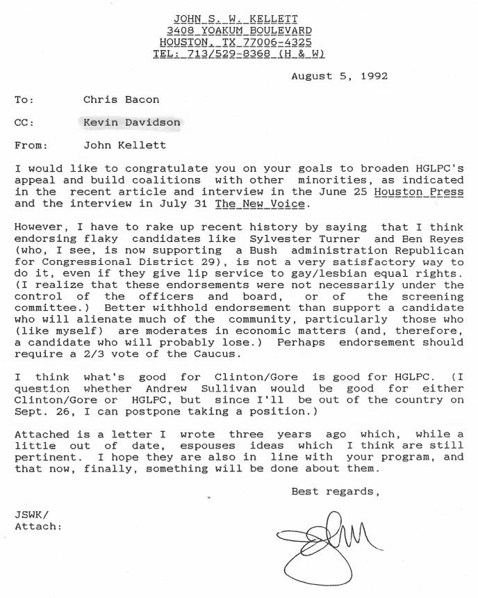 John Kellett's 1989 letter is found in that year's section