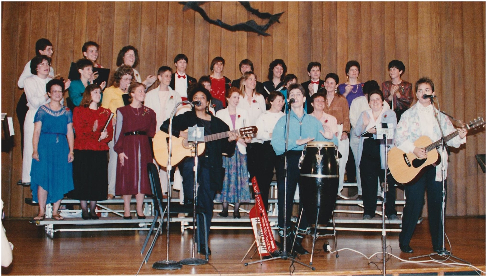 HeartSong backing up Companeras (Raws Ruffin, Rossana Daumas, and Gloria Meehan), 1988