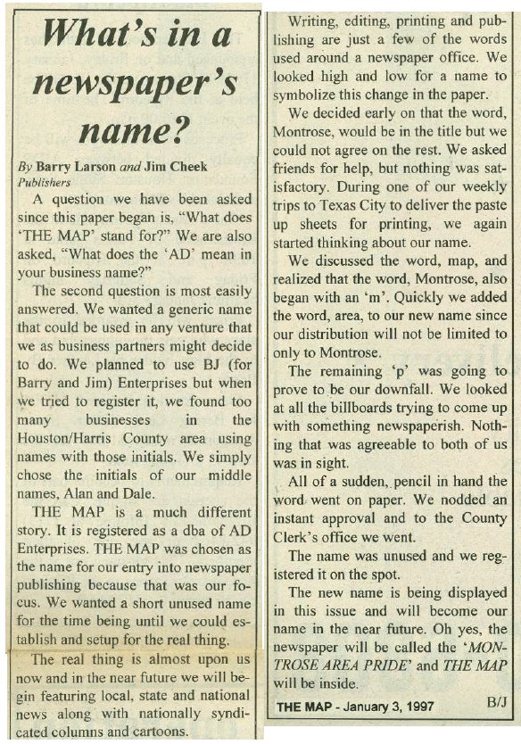 Map, also known as Montrose Area Pride, was published by Barry Larson