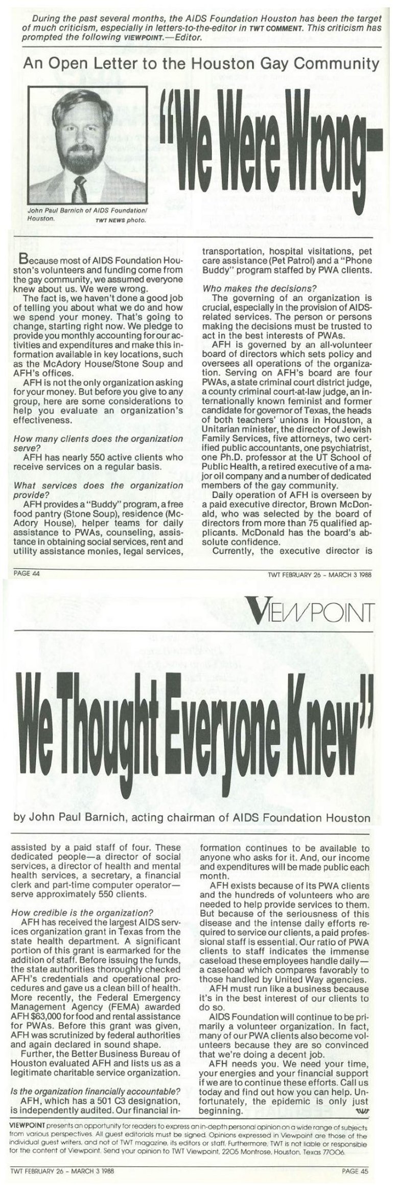 Clippings, Continued 1986 Name Changed from KS/AIDS to AIDS Foundation