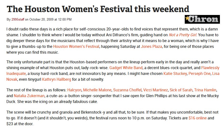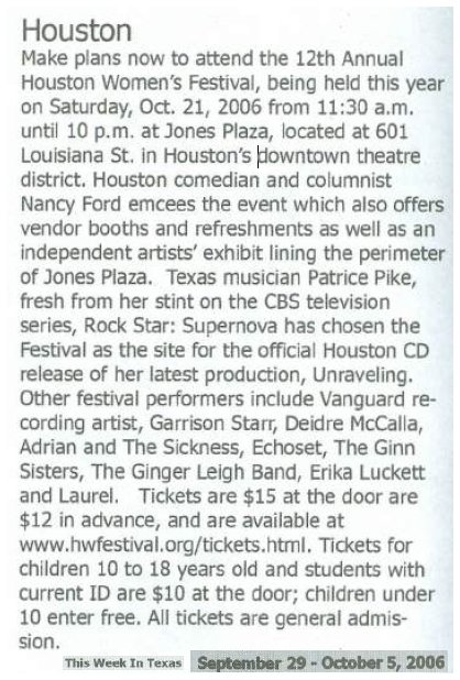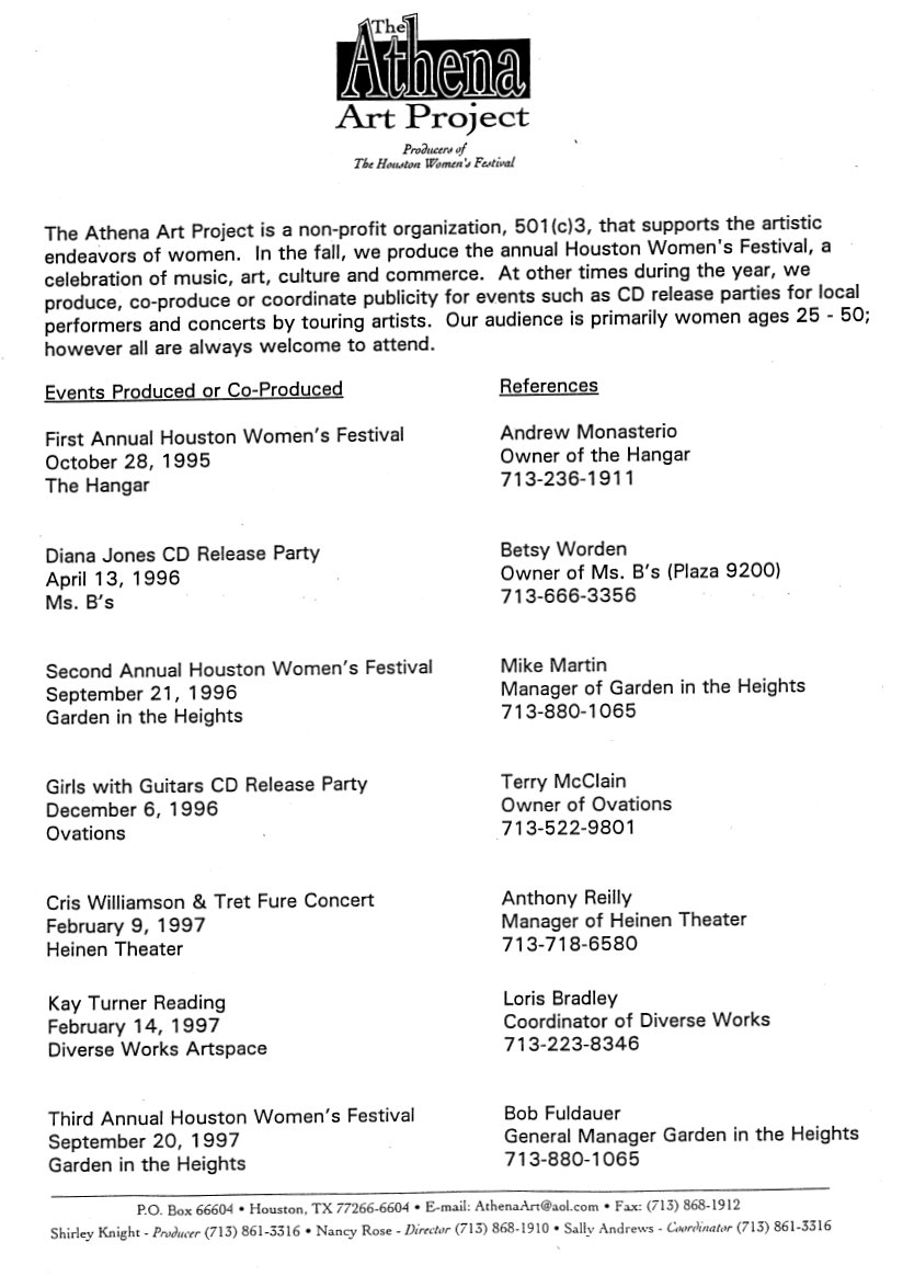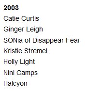 Catie Curtis, Ginger Leigh, Sonia, Kristie Stremel, Holly Light, Nini Camps, Lalcyon First year at Jones Plaza no clippings yet |