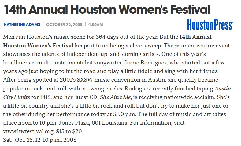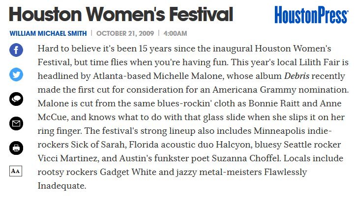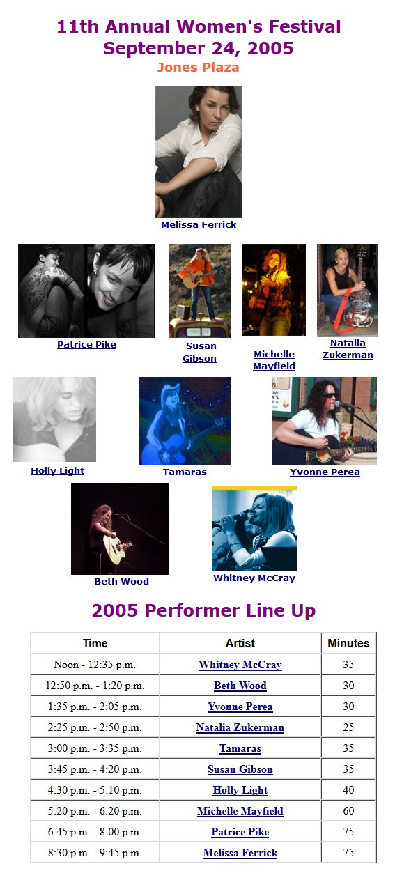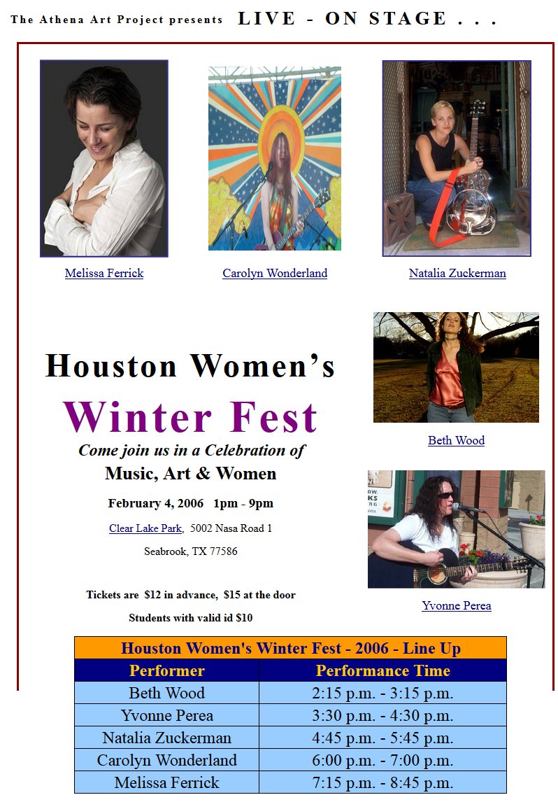 Beth Wood, Yvonne Perea, Natalia Zuckerman, Carolyn Wonderland, Melissa Ferrick |