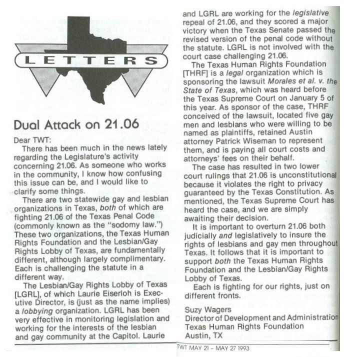 1982 - Lesbian / Gay Rights Advocates (LGRA) >> 1987 - 1991 - Lesbian / Gay Rights Lobby >> |