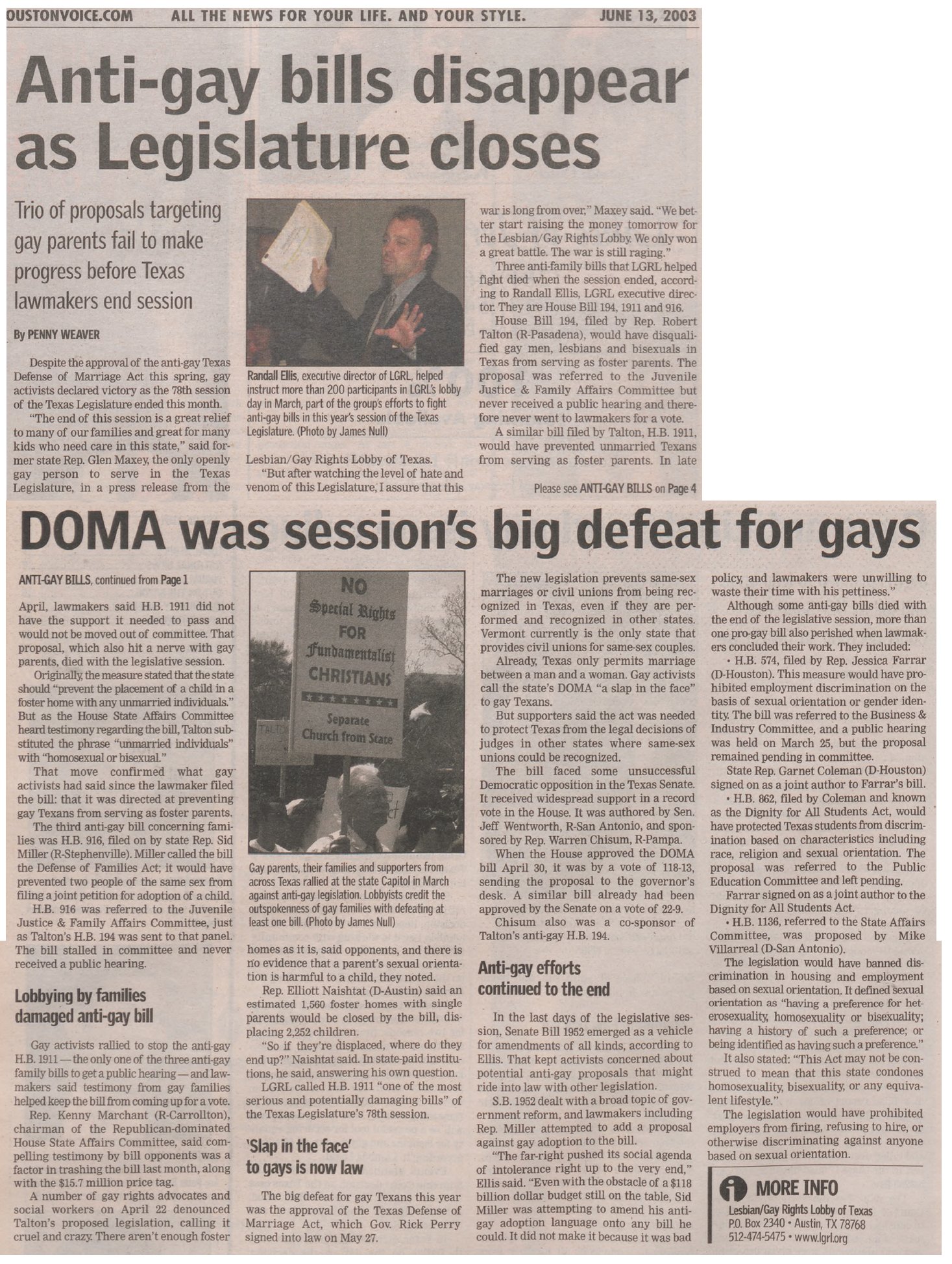 1982 - Lesbian / Gay Rights Advocates (LGRA) >> 1987 - 1991 - Lesbian / Gay Rights Lobby >> 1992 - 1999 - Lesbian / Gay Rights Lobby, Part 2 >> |
