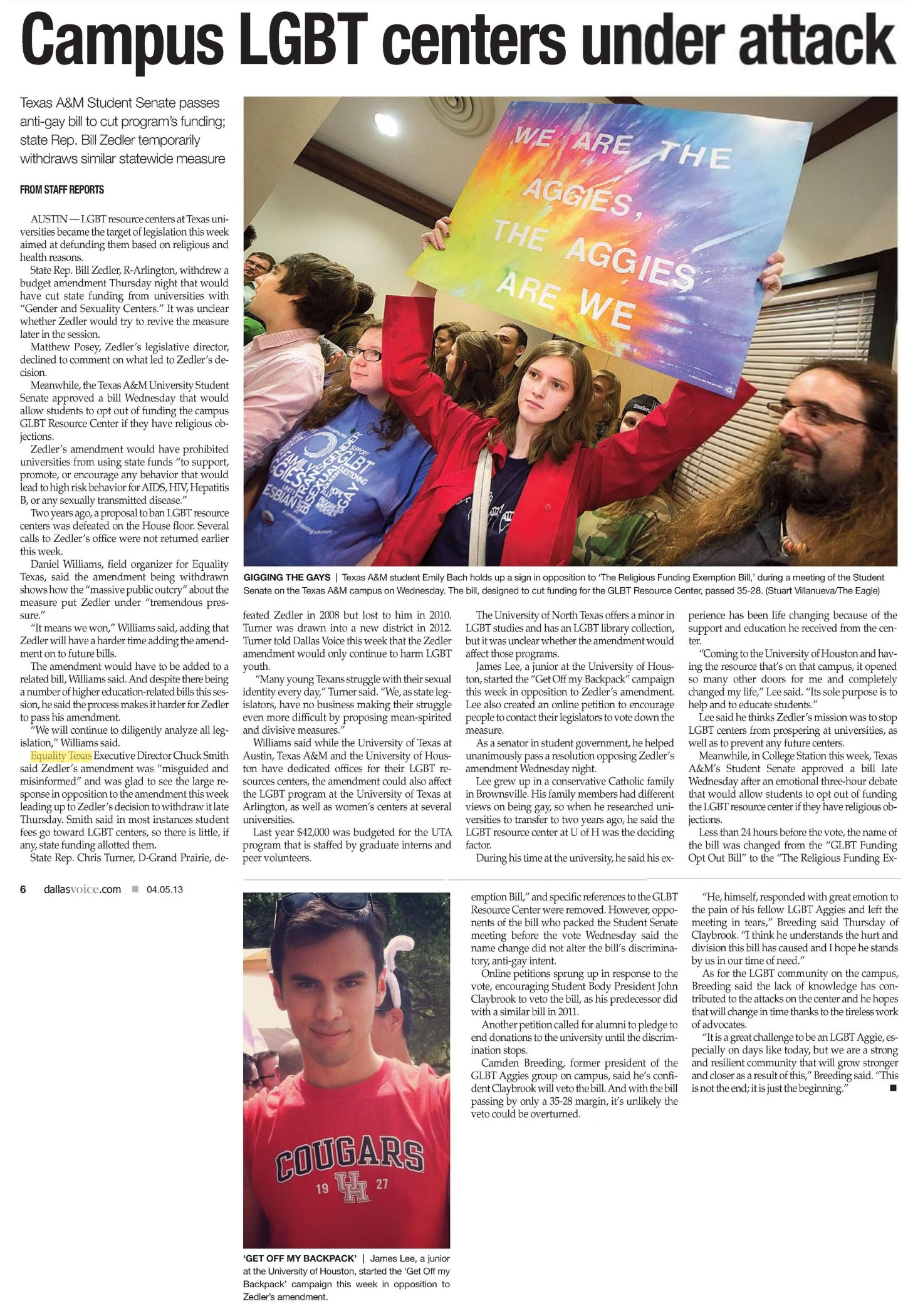 - 2016 - Equality Texas,