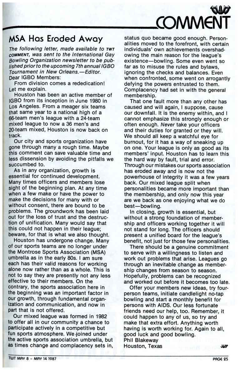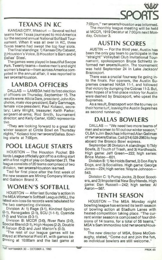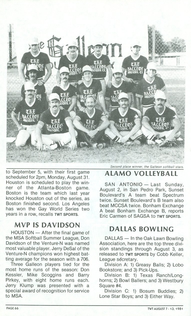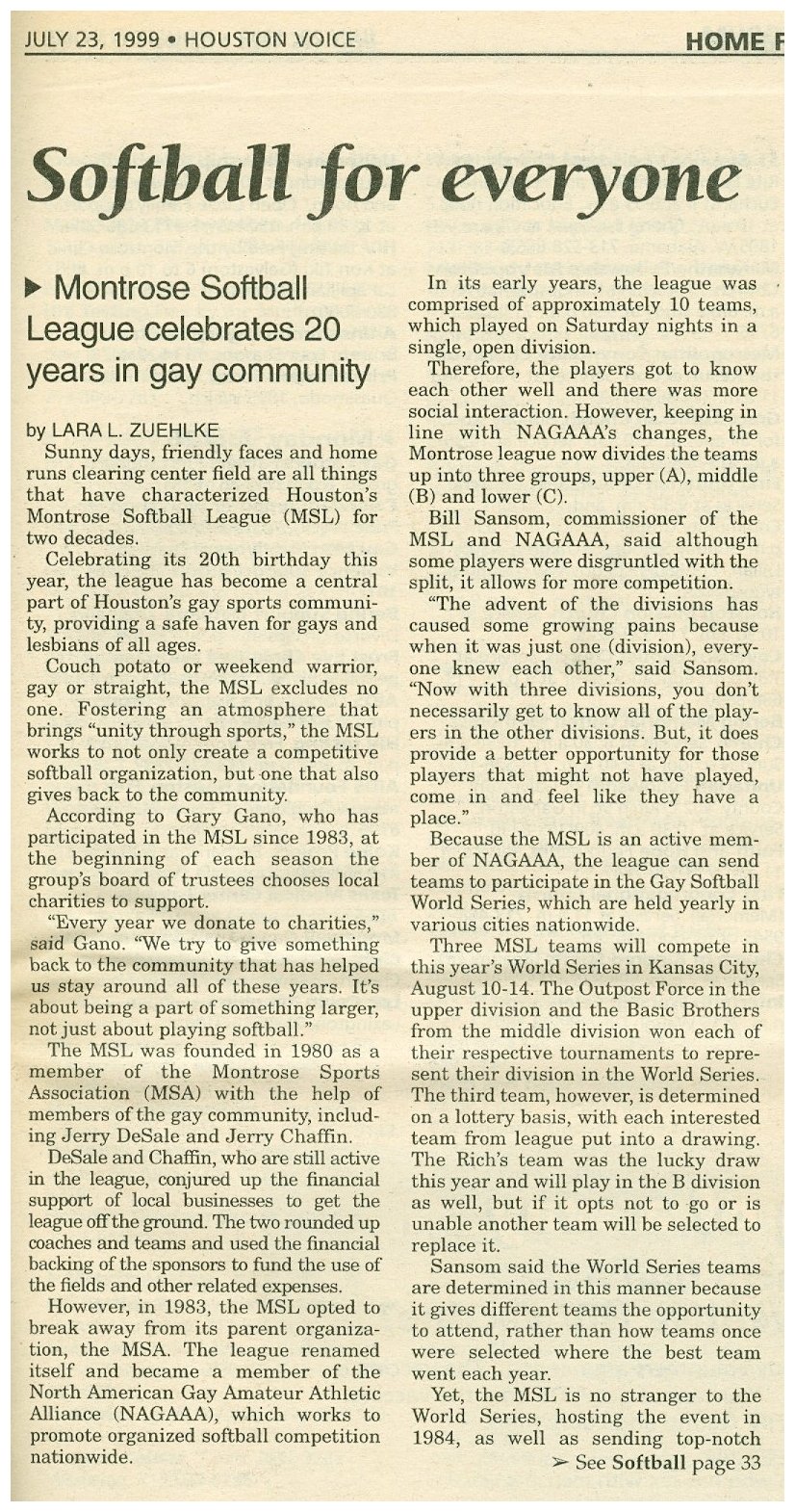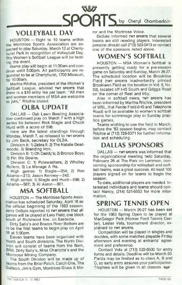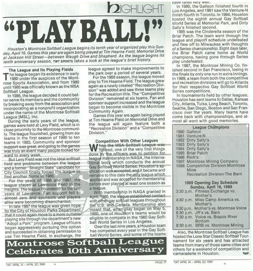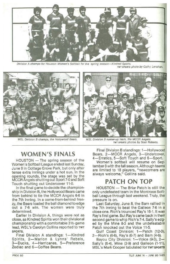 1983 During this year the Softball League split apart from MSA into its own organization