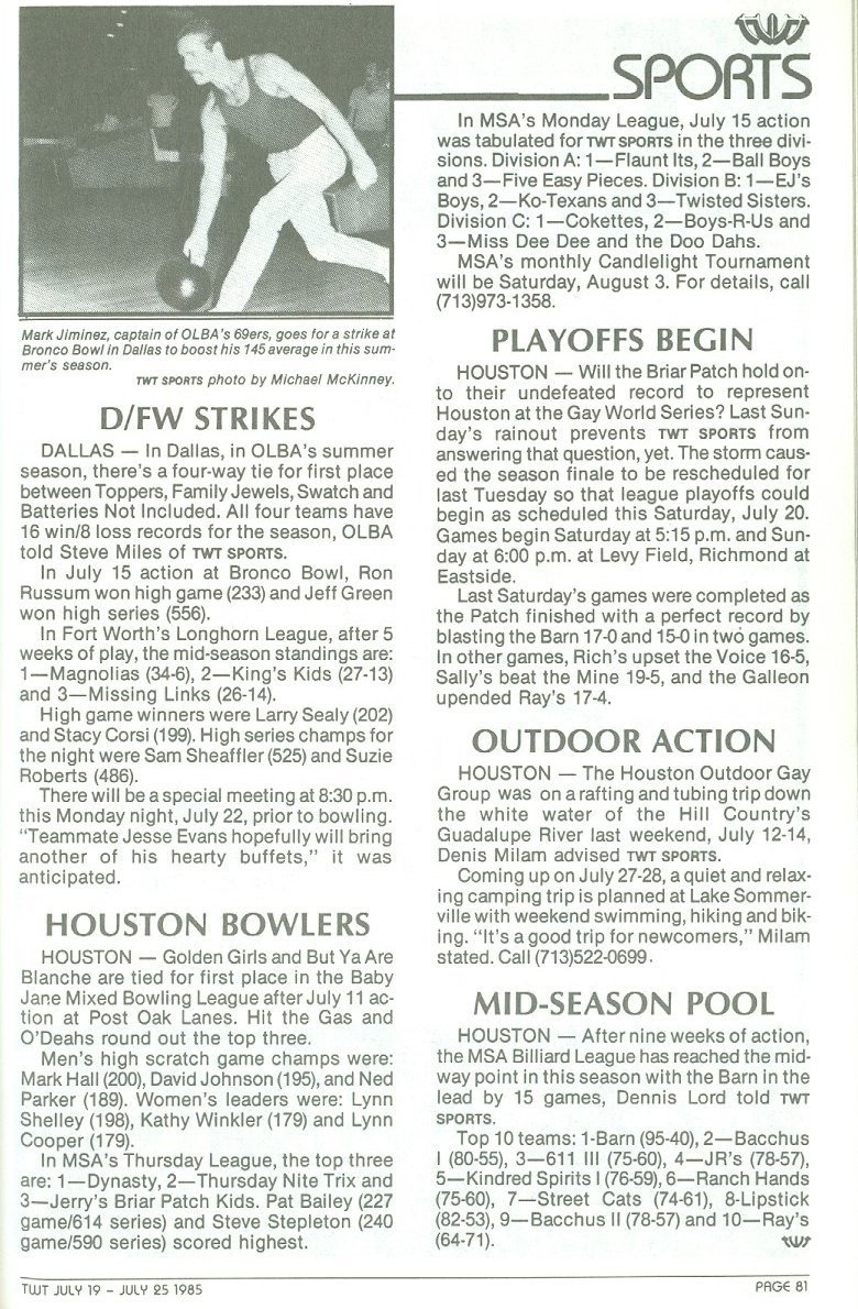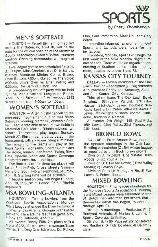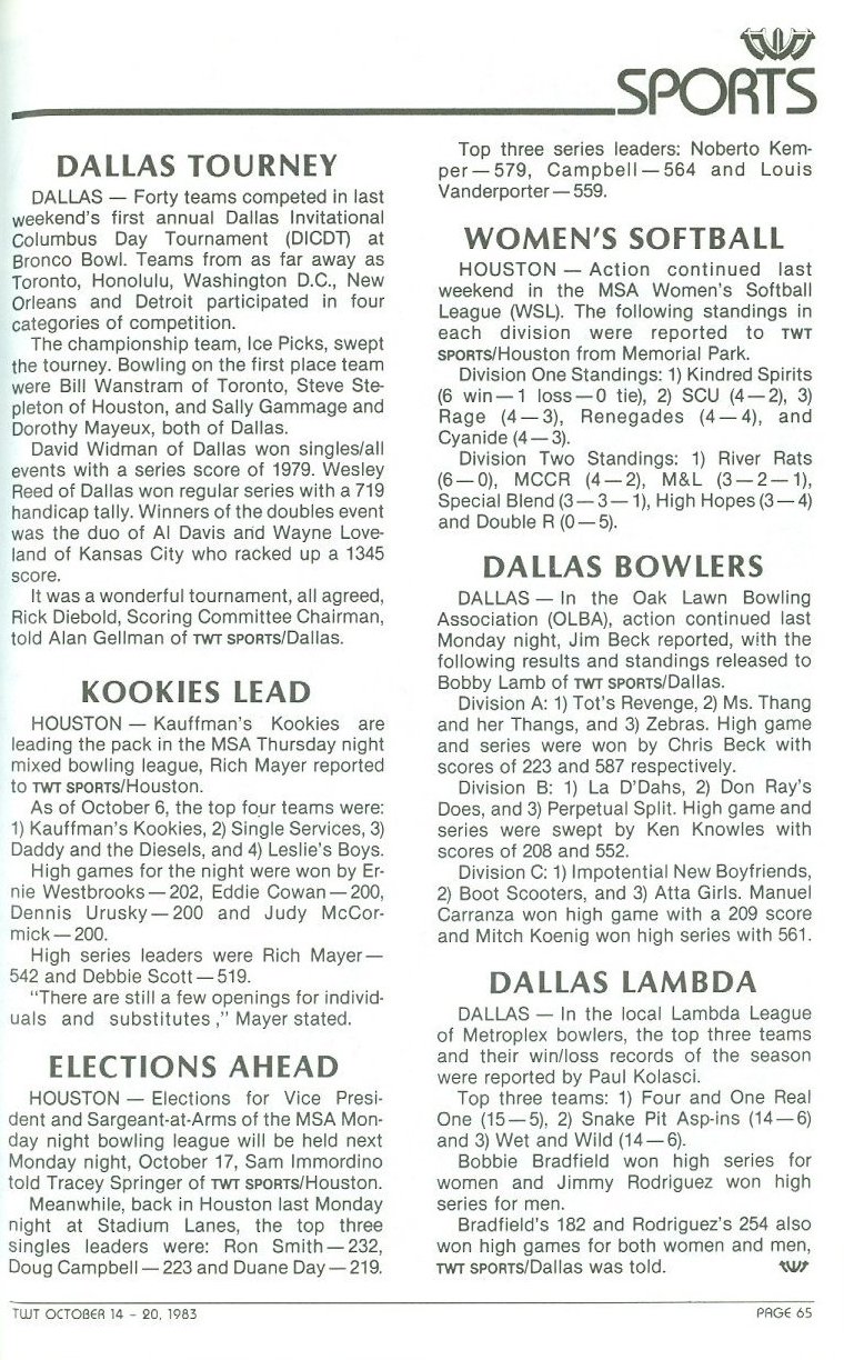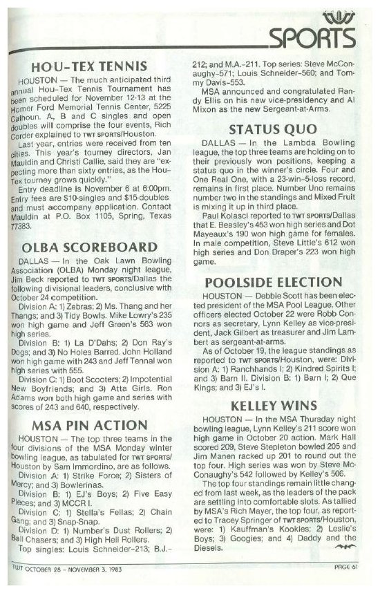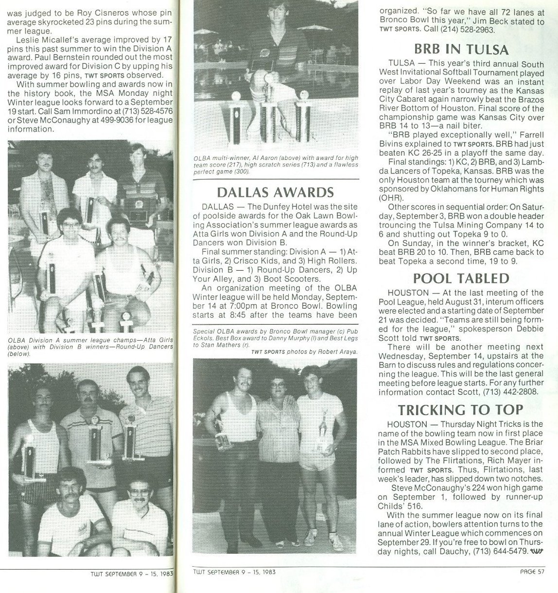 Introduction Bowling Newsletters Photos Clippings Coverage of the various