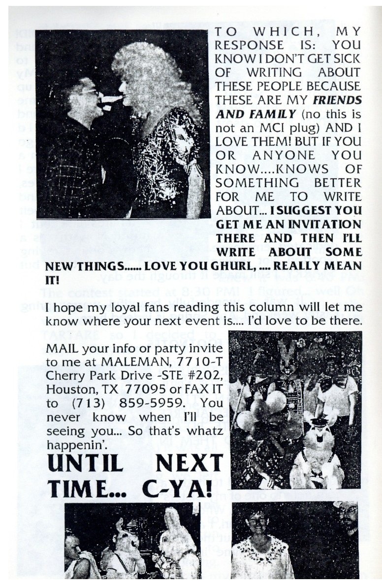 clipping (above left), the earliest one I found quoting a 'year'.... Below, some quite casual coverage in Maleman, Spring 1994