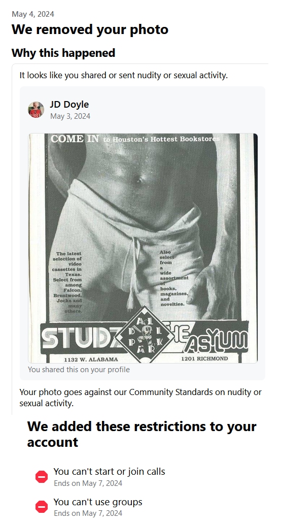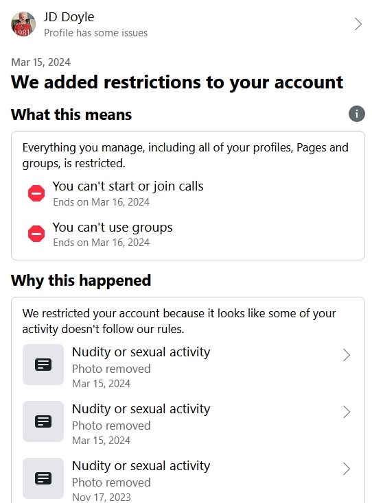 JD's Facebook Jail How I Got There or, my scandalous posts that offended the algorithms
