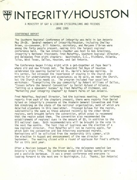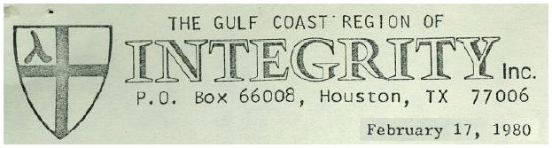 1974 an Episcopal group called Integrity had formed, with chapters nationally.