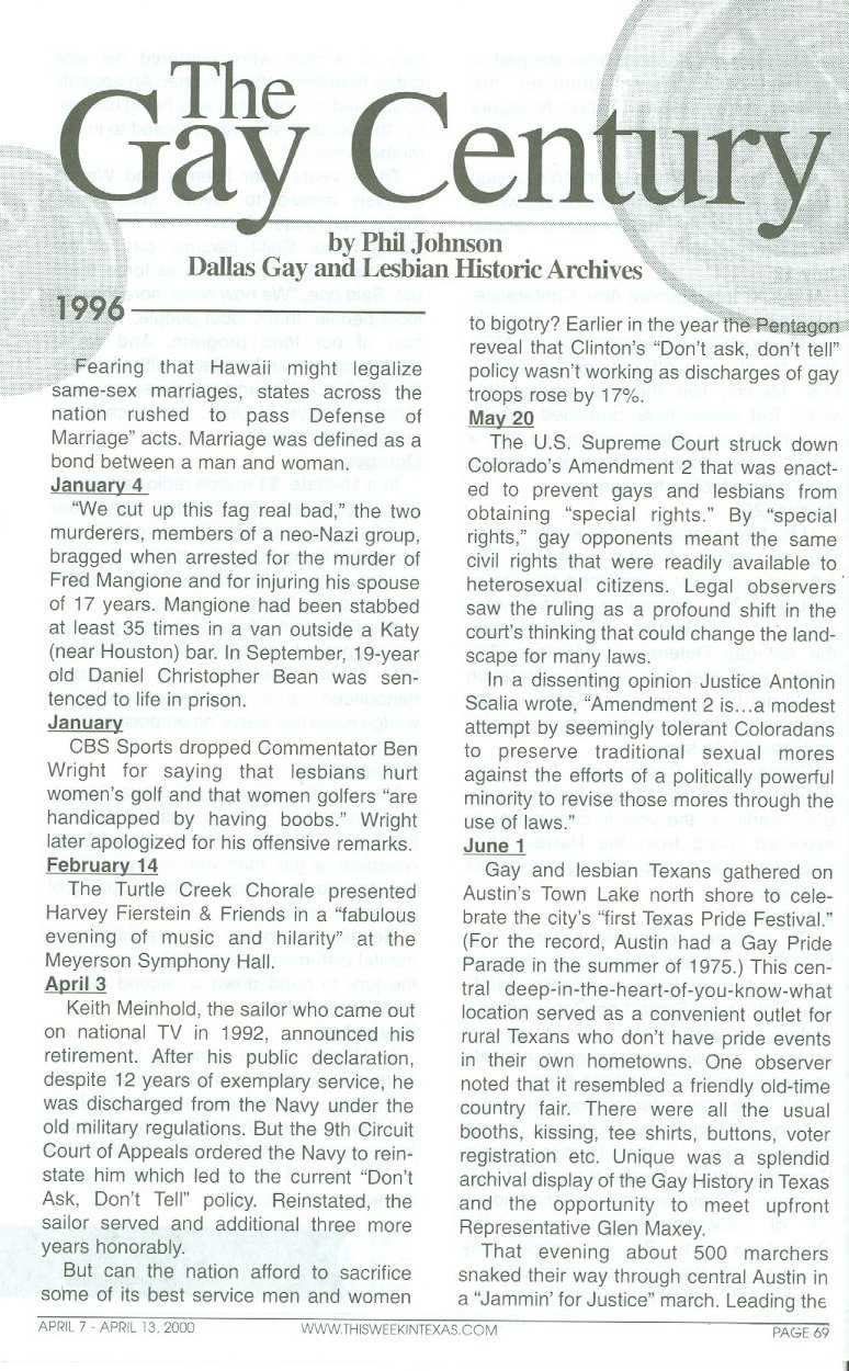 Gay Century - Feb to Dec 1998