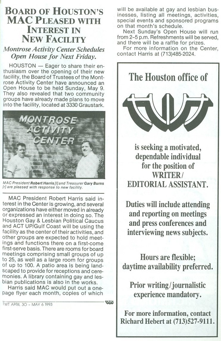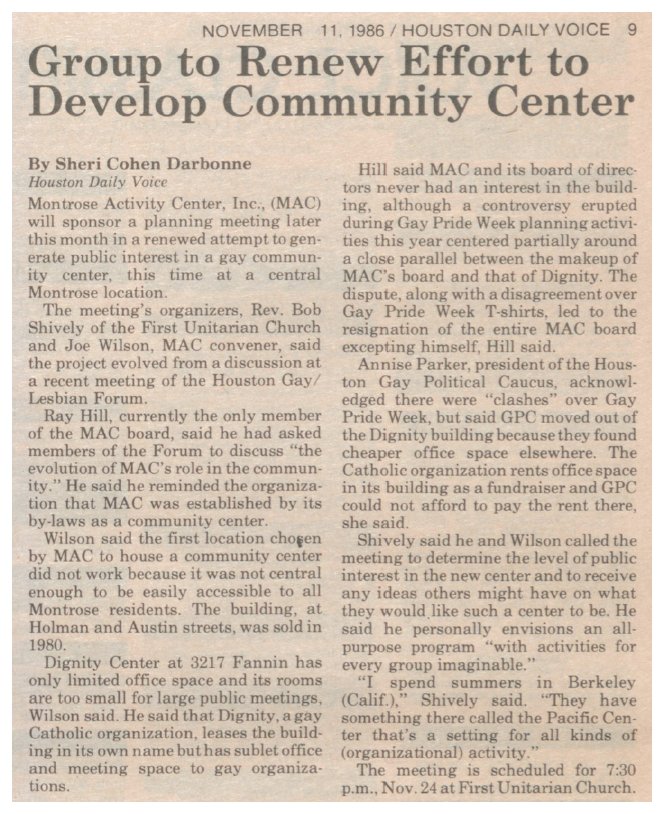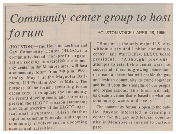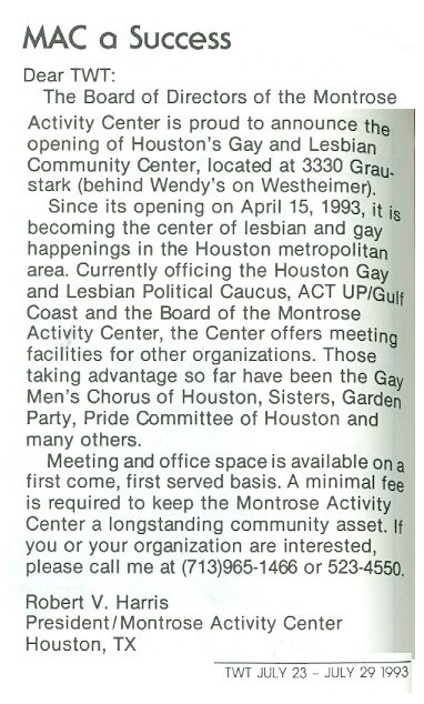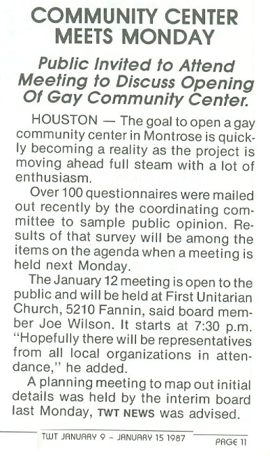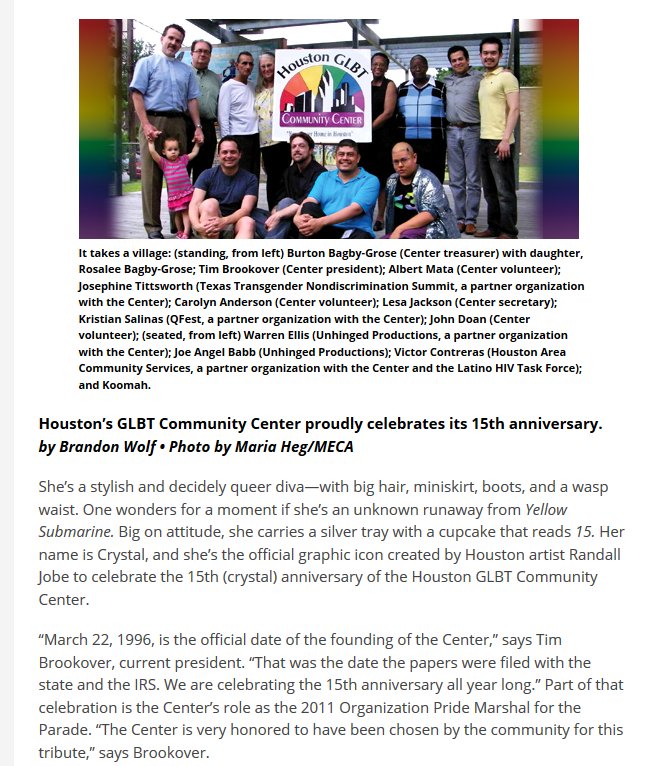 22, 1996 the Houston GLBT Community Center was founded... 2011
