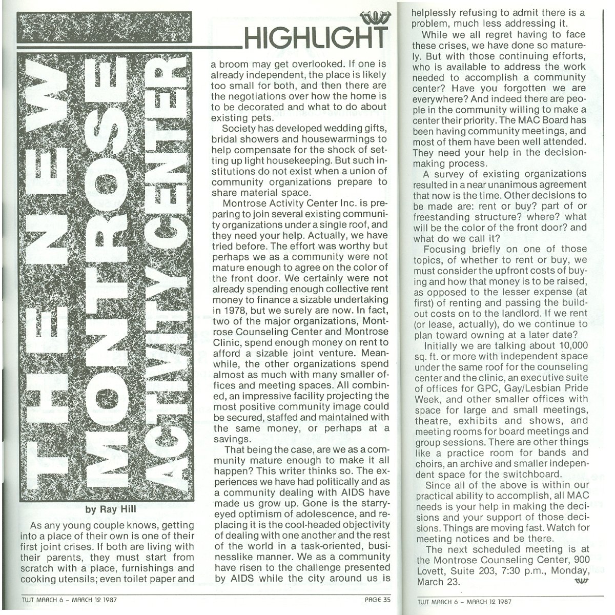 What happened next? See Montrose Activity Center Newsletter