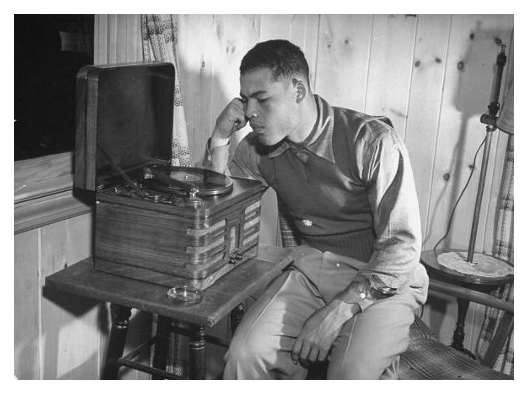 Below, actor Barry Coe, ~1954 Listening to Stan Kenton's "Portraits