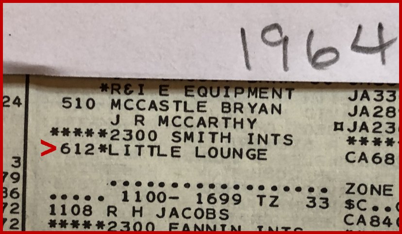 Directory for 1964, instead of Shirley's Lounge, lists the Little Lounge;