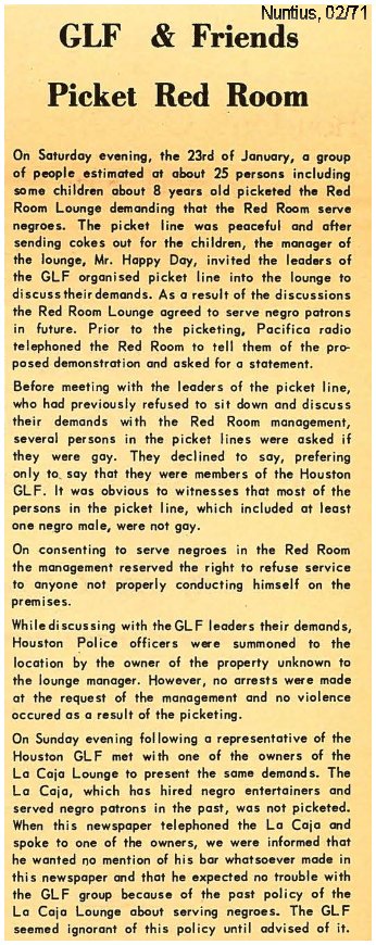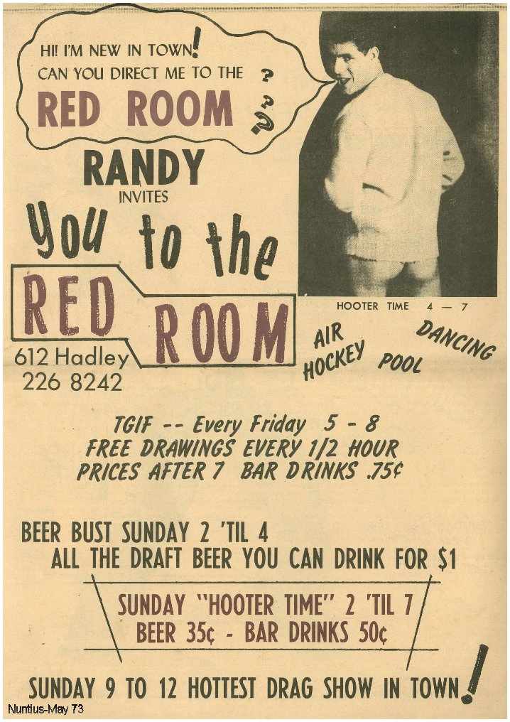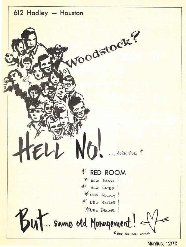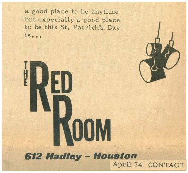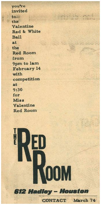 Red Room The Red Room was a prominent early bar in Houston. But before