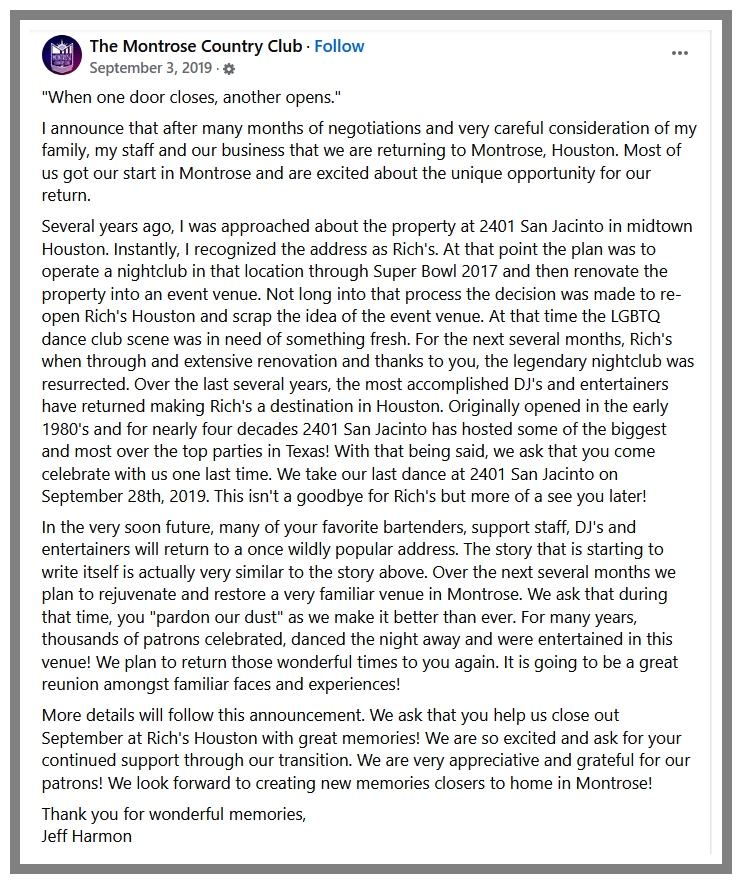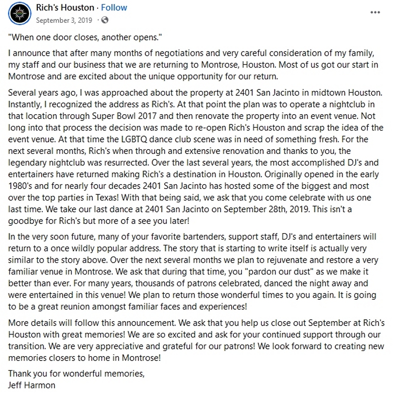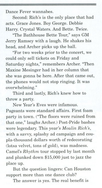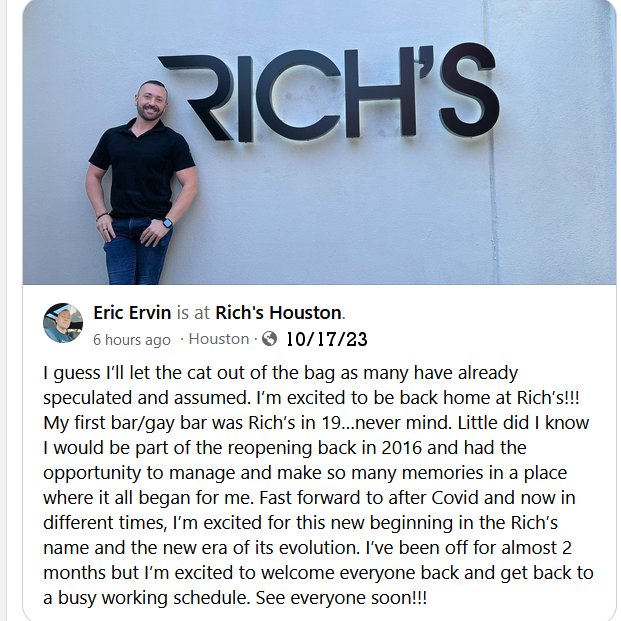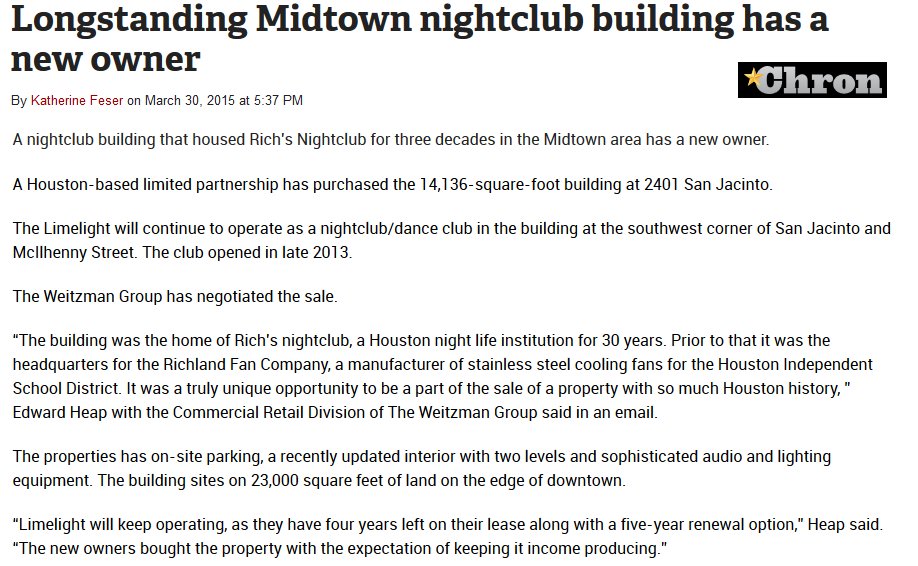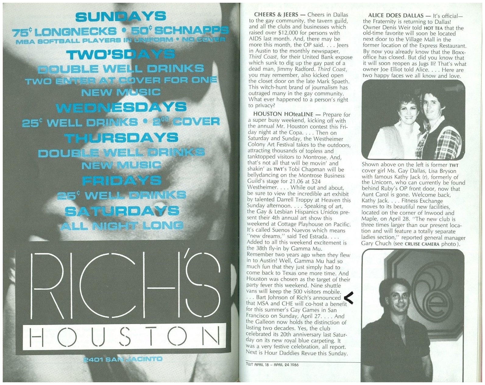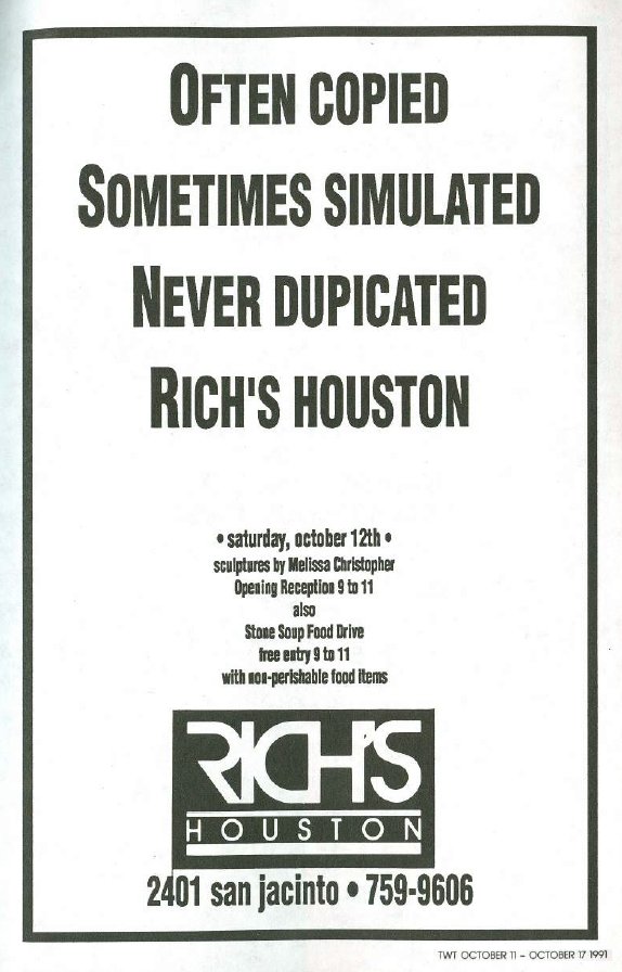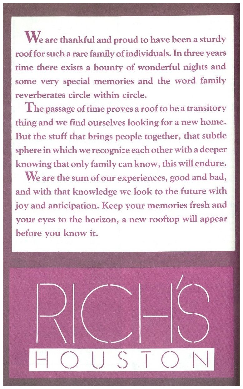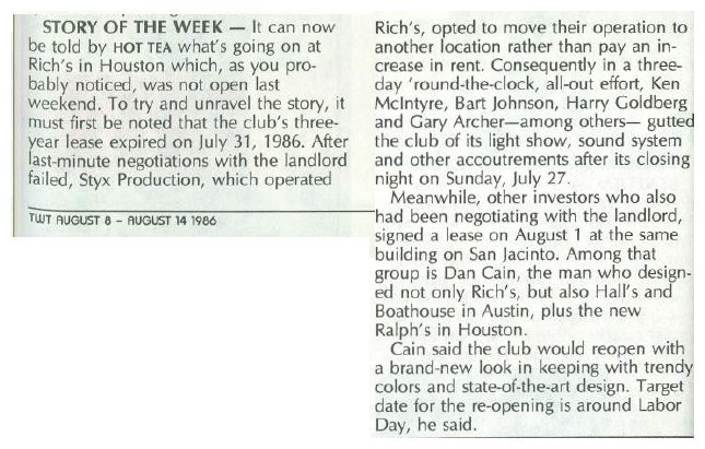 the space at 2401 San Jacinto again became Rich's....kinda a stock split... Part of the story right from the owner, Jeff Harmon