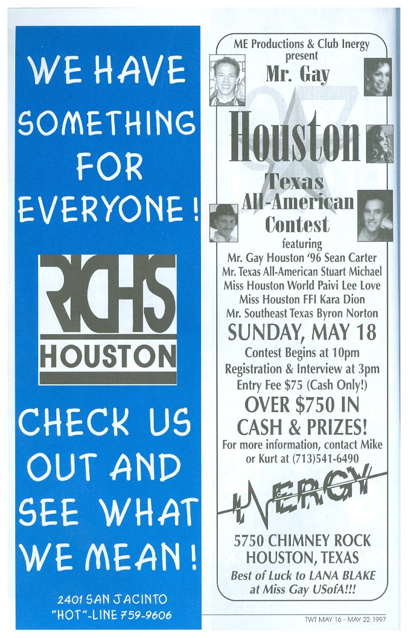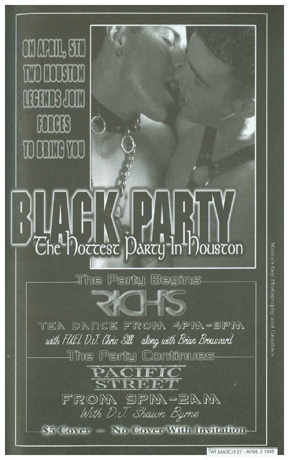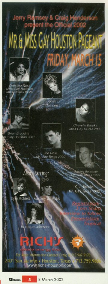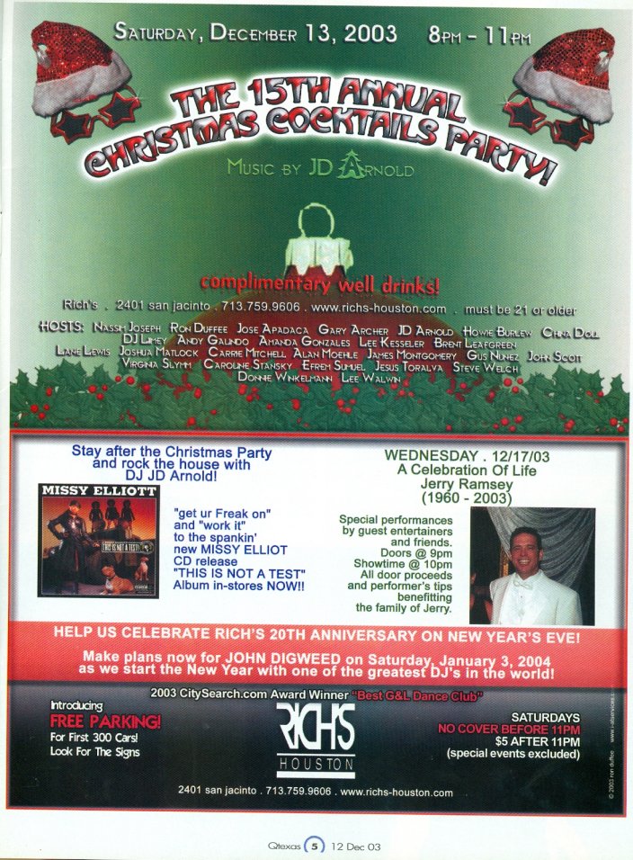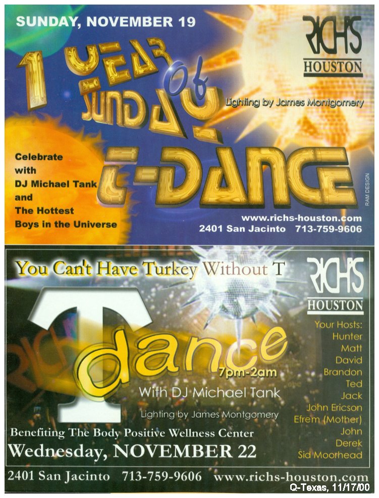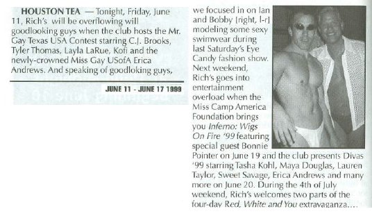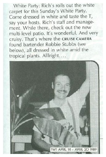 above left, ad in TWT for Rich's, 4/16/99...I joked that it was referred to the next day as the White Party....and above right, the next year it Was.......