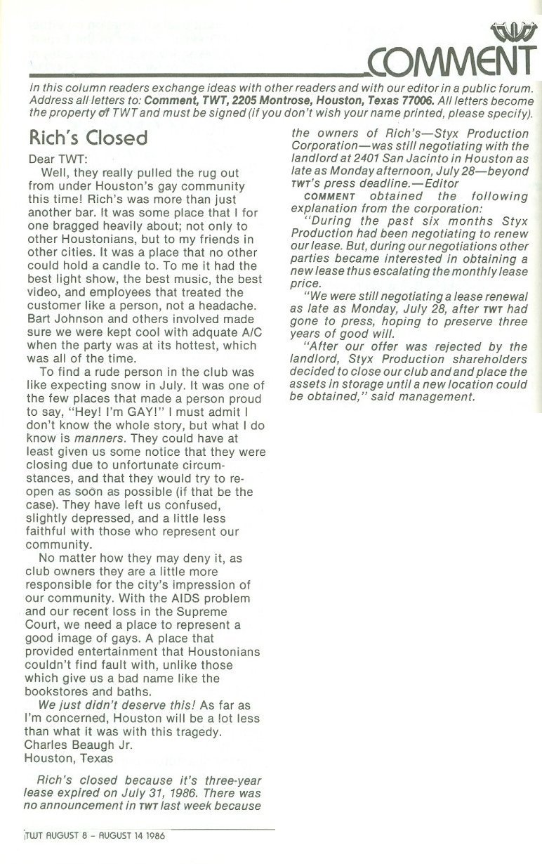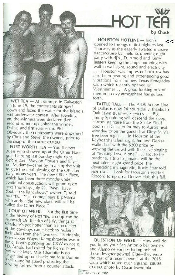 below, first mention in This Week in Texas (TWT), 5/27/83 1983