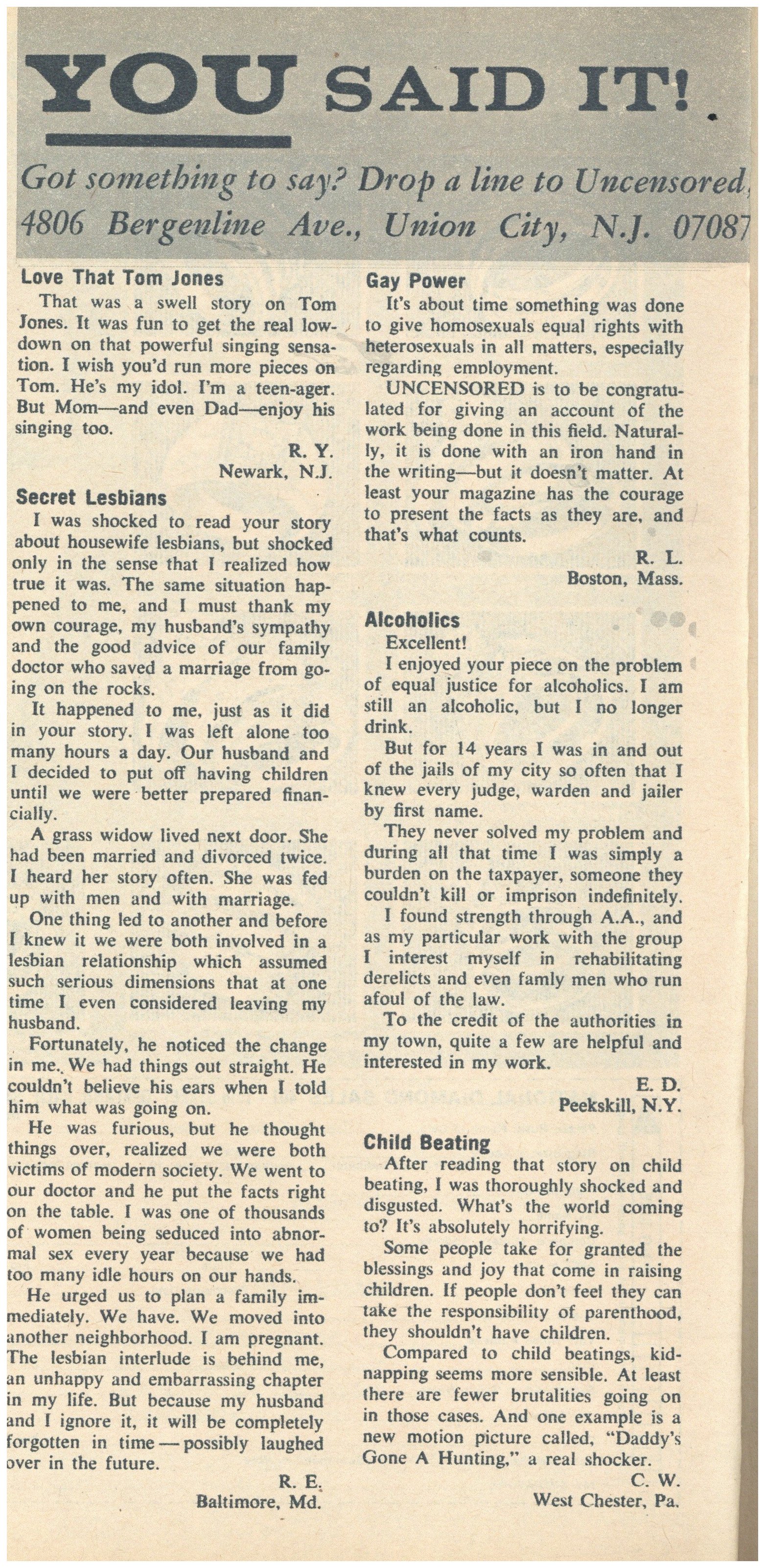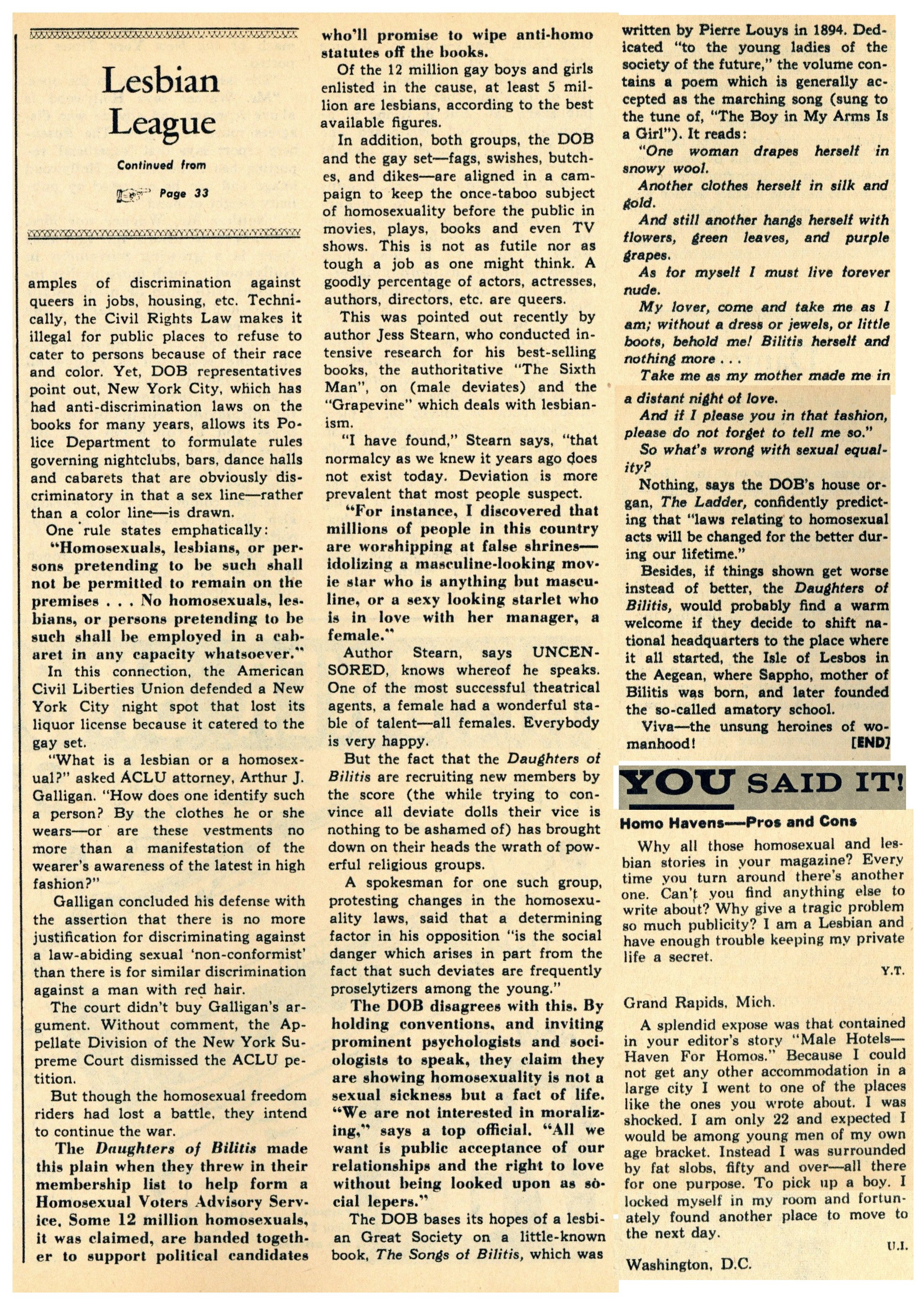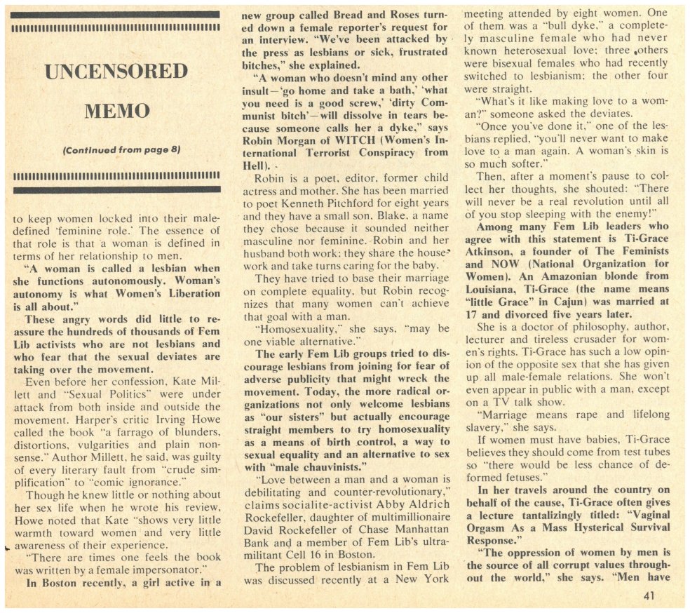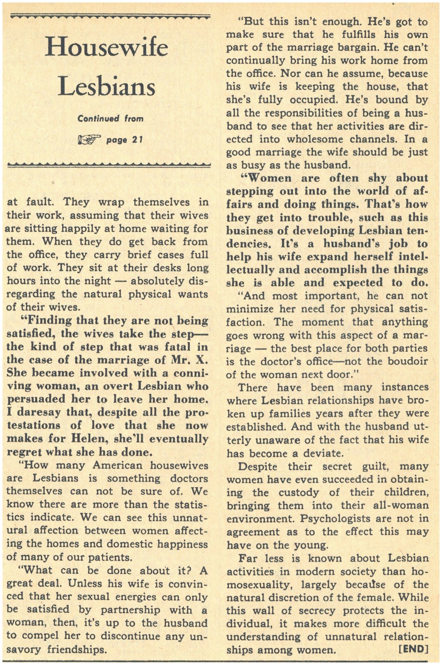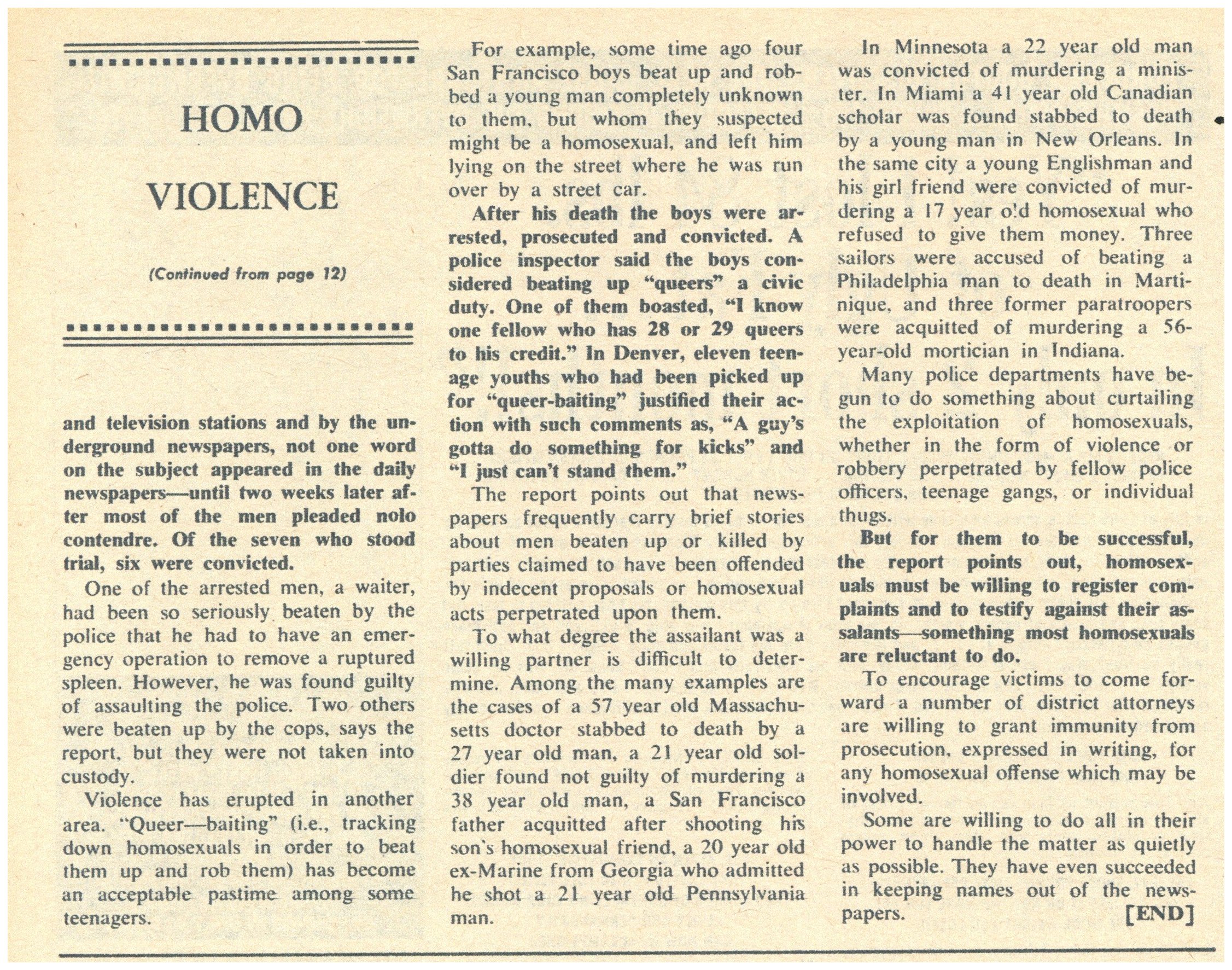 February 1970 Violence Strikes Homo Shadow World and Why Divorced Gals Become Lesbians