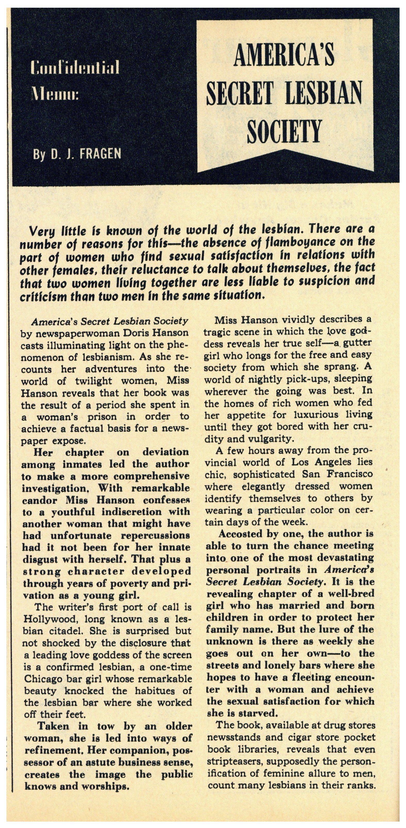Tabloid Homosexuality the 1950s/60s Confidential,