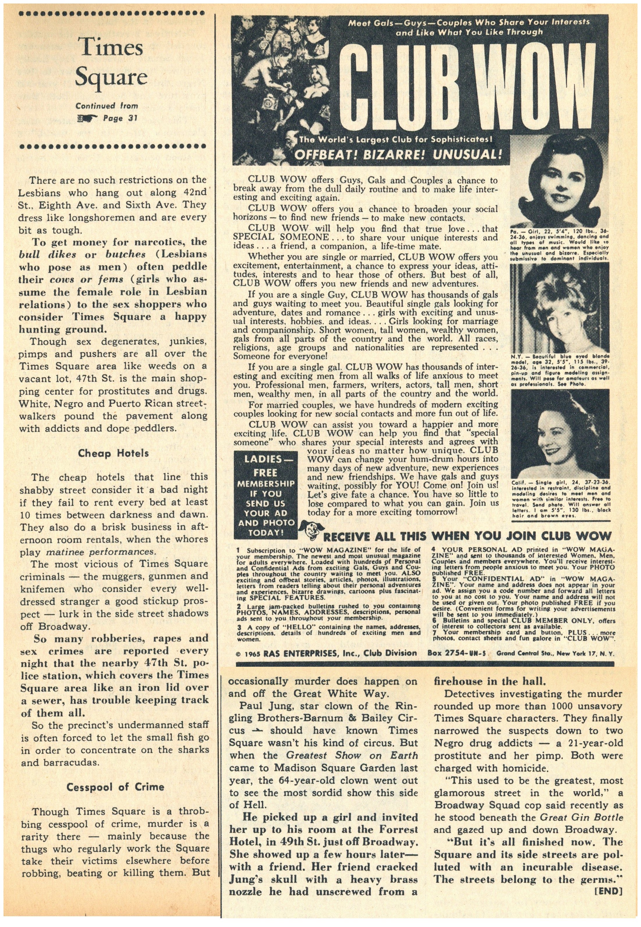 June 1966 Times Square: Haven of Homos, Muggers, Badgers and Con Men