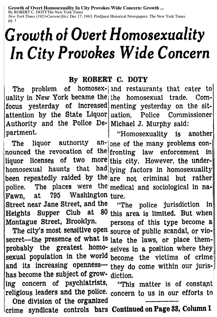 November 1960 July 1964 Below is the intro of the NYT article referred to in this article. ...although